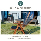 【背もたれ7段階調節】背部は7段階リクライニング仕様。お好みの角度でリラックスした時間を過ごせる。