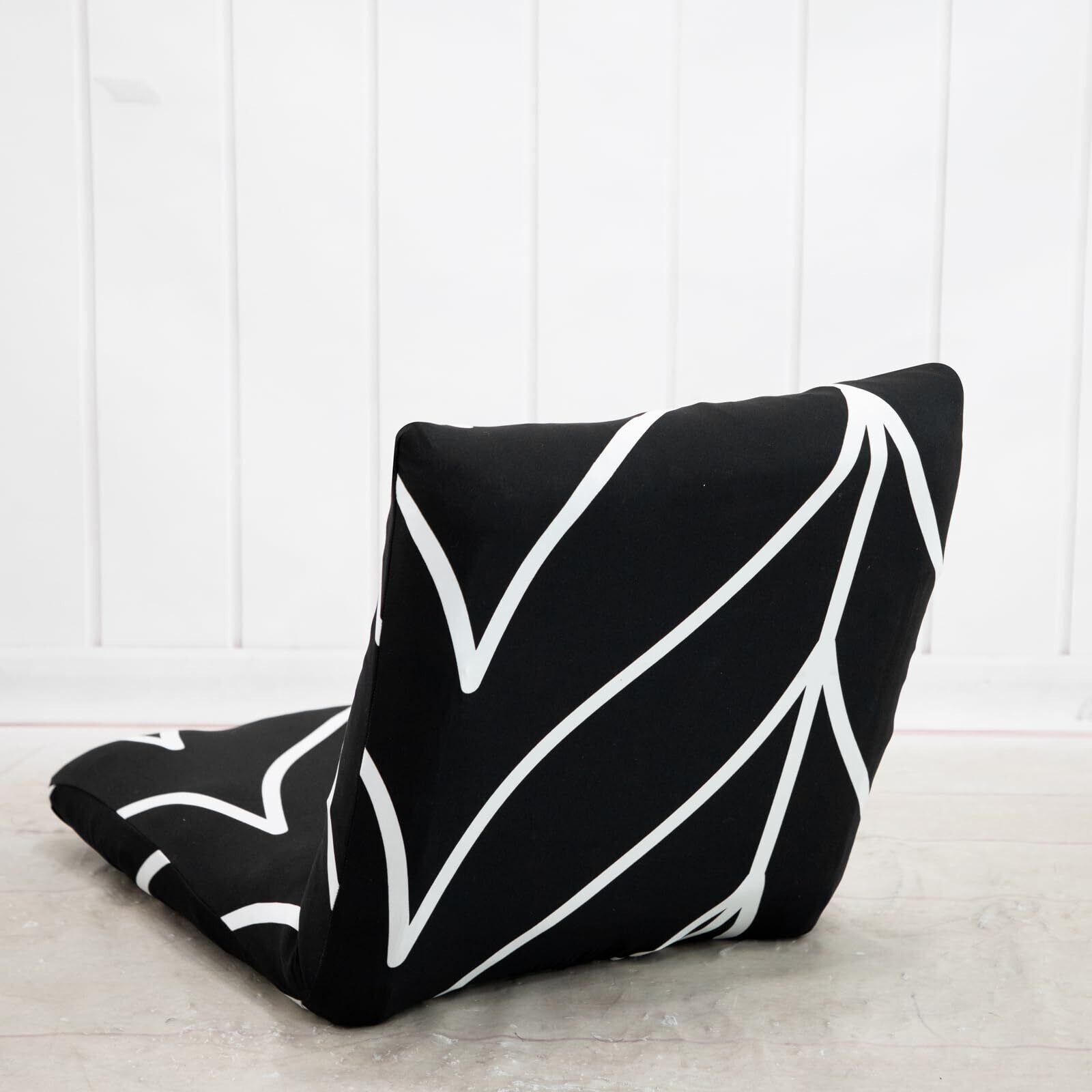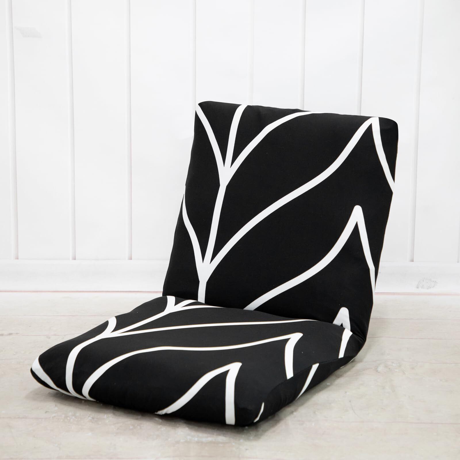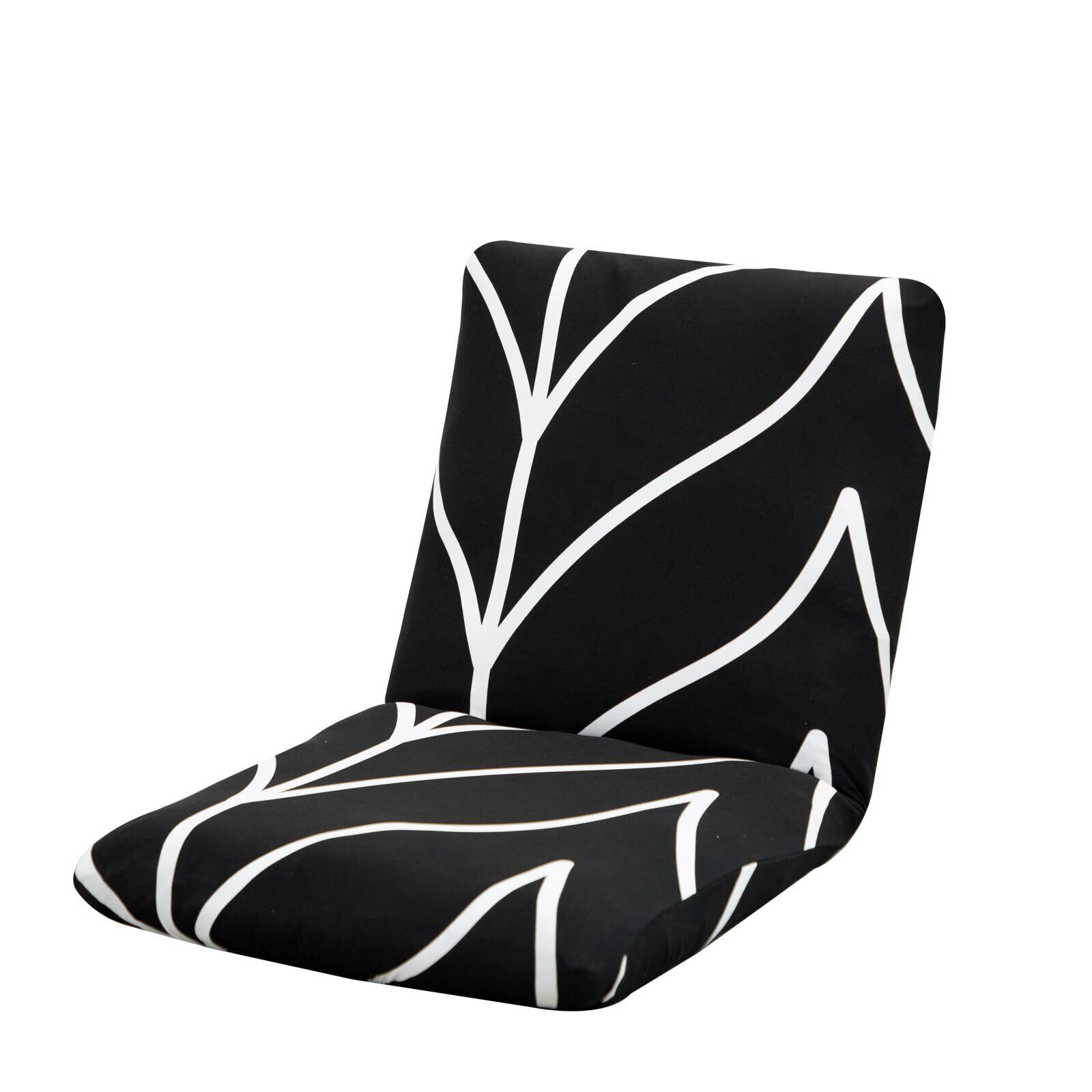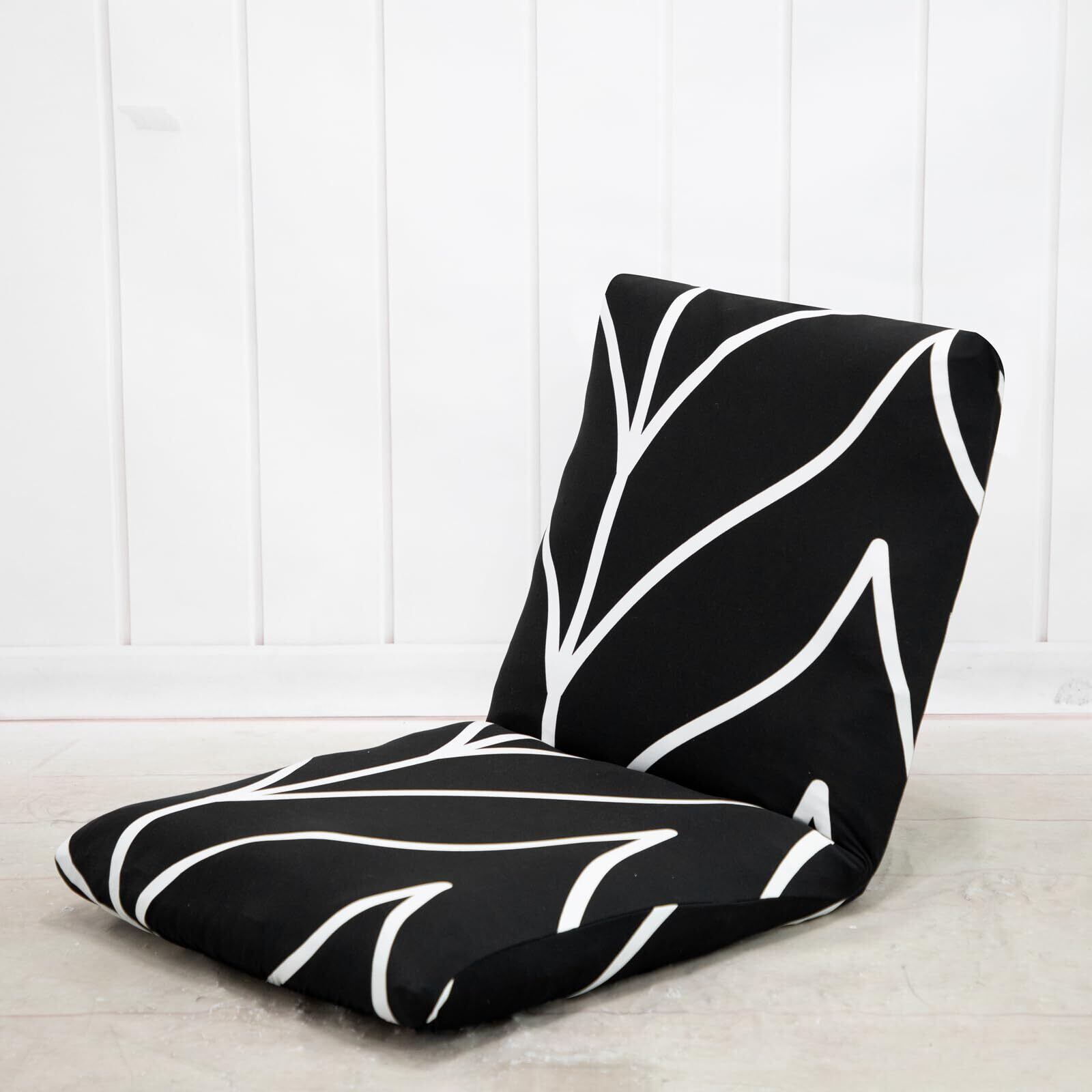 【在庫限り】座椅子カバー フルカバー プリント柄 洗濯可能 取り外し可能 ポリエステル生地伸縮 椅子カバー 肘掛なし用 オールシーズン快適 (ブラック+ホワイト01)