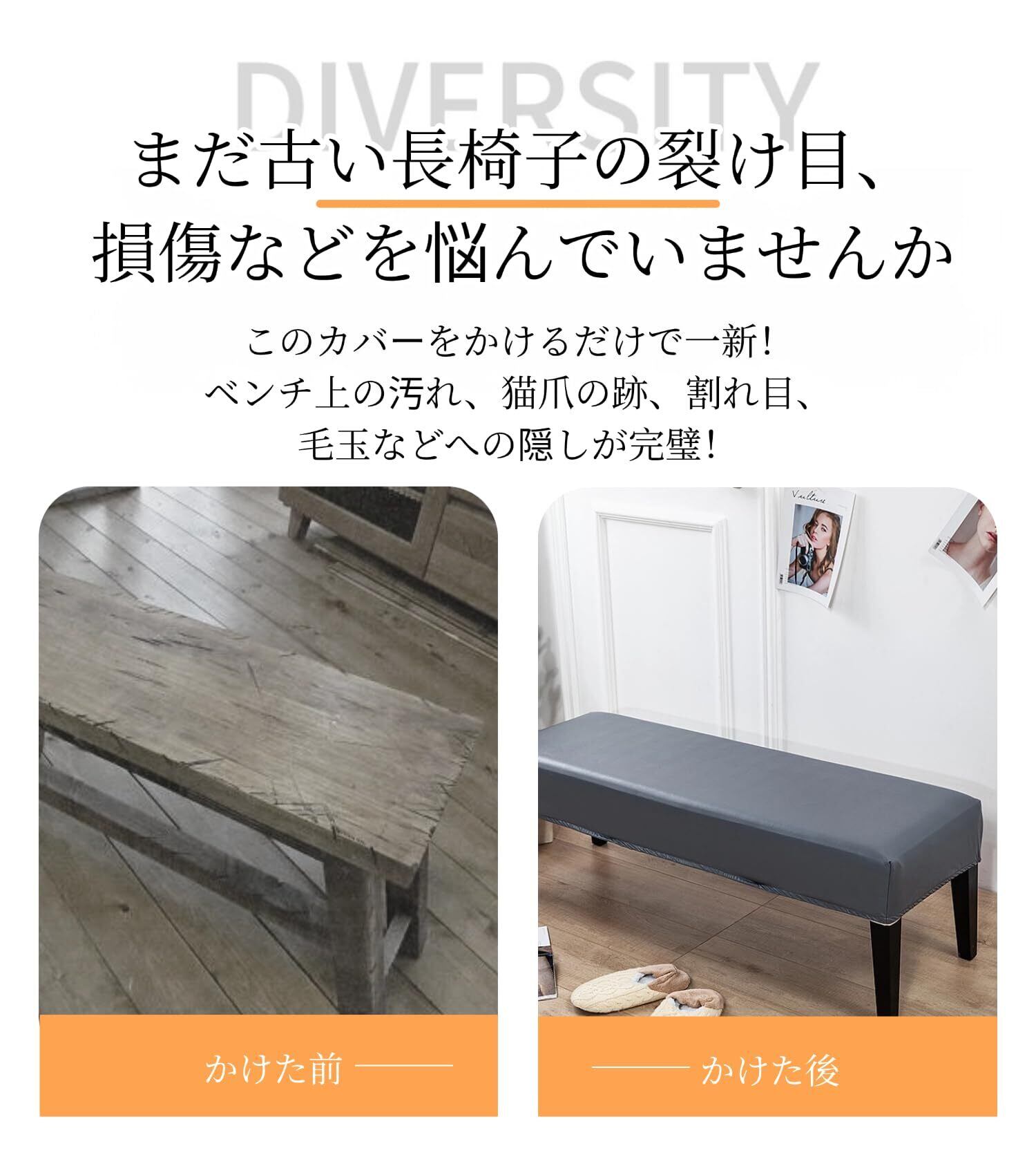 「気軽に模様替え&汚れ防止」ベンチを買い換えずに、ベンチカバー一枚で真っ新なベンチに変えられます。ベンチカバーは、古い損傷したベンチや醜いベンチに新しいきれいな外観を与えます。また、汚れ、ほこり、食べ物の染み、こぼれ、引っかき傷などの傷からベンチを保護することで、ベンチの寿命を延ばすことができます。