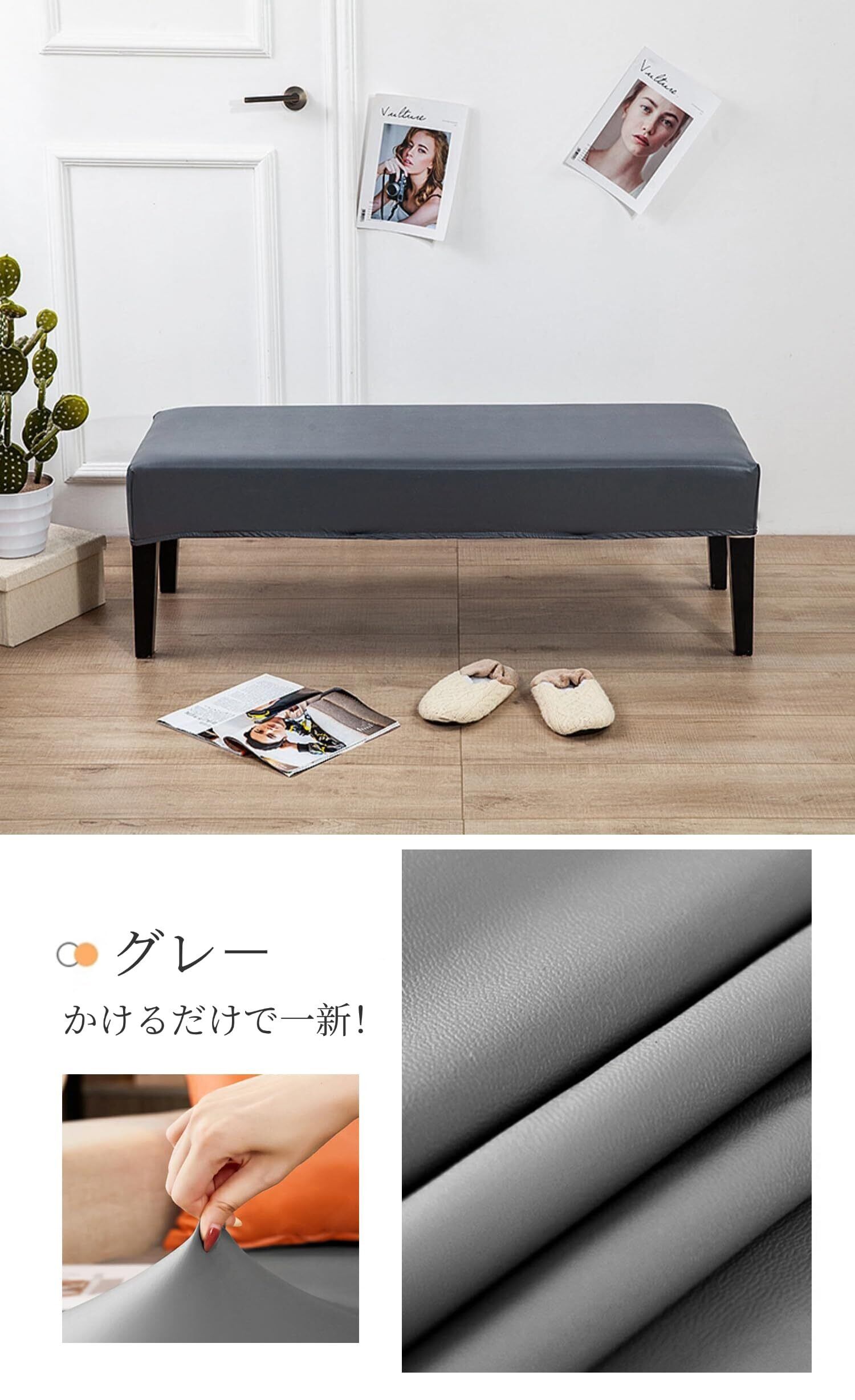 【数量限定】JUNA KOOKベンチカバー PUレザー ベンチシートカバー 長椅子カバー ダイニングベンチカバー ダイニングスツールカバー スリップカバー フィット 防水耐油 取り付け簡単 ストレッチ 洗える 長座面チェアカバー イスカバー 家庭 ホテル レストラン (グレー, 107-137cm)