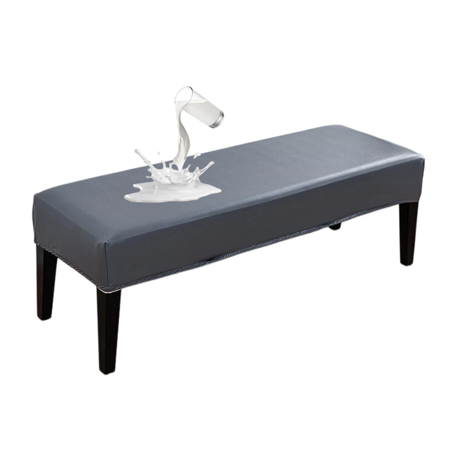 JUNA KOOKベンチカバー PUレザー ベンチシートカバー 長椅子カバー ダイニングベンチカバー ダイニングスツールカバー スリップカバー フィット 防水耐油 取り付け簡単 ストレッチ 洗える 長座面チェアカバー イスカバー 家庭 ホテル レストラン (グレー, 107-137cm)