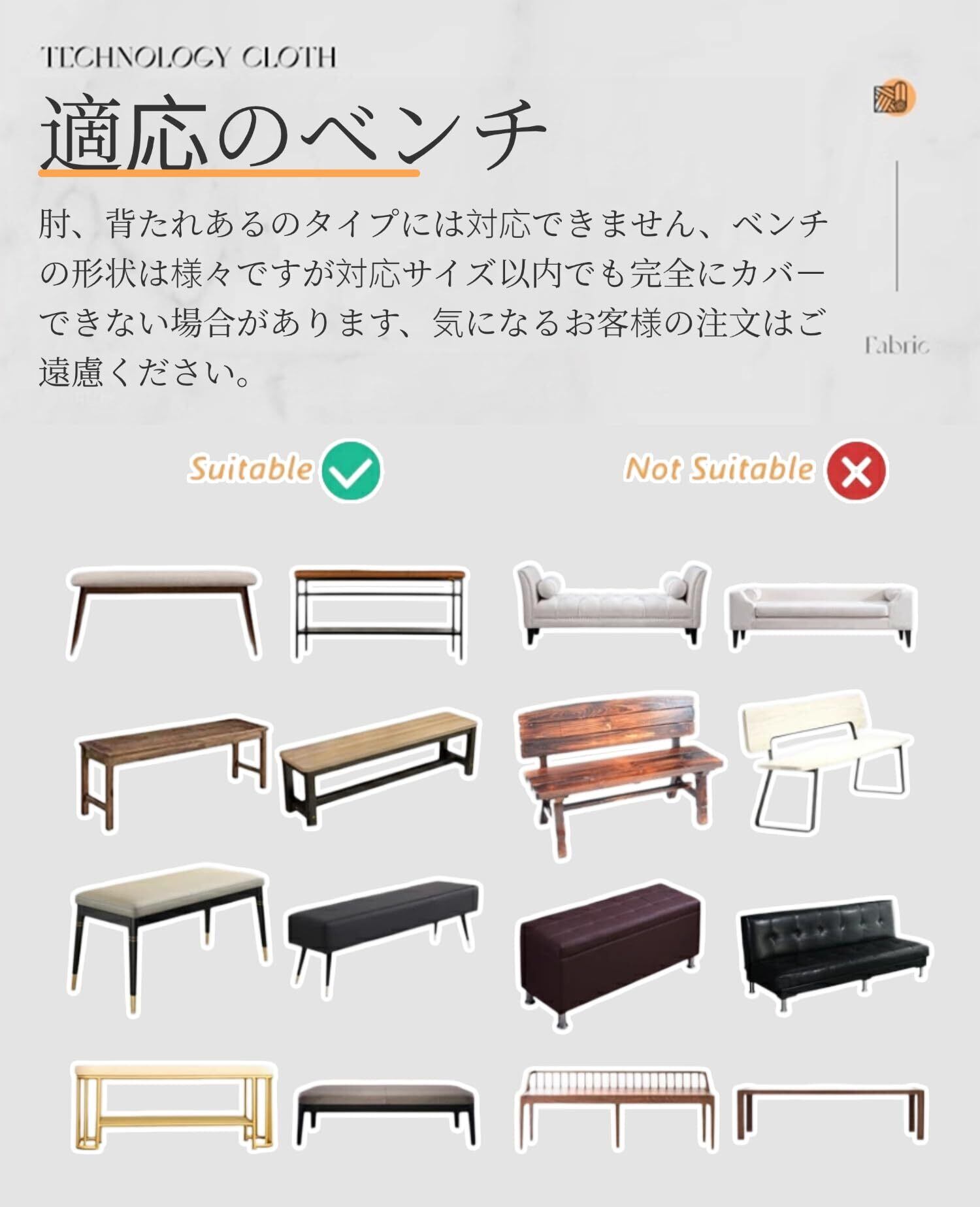 「適用場合」ほこり、キズ、食べ物、ペットの毛、ペットの爪とぎなどの汚れや損傷からベンチを保護し、掃除が簡単で、ベンチの寿命を延ばしてお金を節約しよう。家庭・ホテル、室内装飾、オフィスにご利用はもちろん、ホテル、レストラン、結婚披露宴、ウェディング、パーティー、祭典、式典などの場合にも大活躍です。カバーをつけるだけで、見慣れた家具の印象がガラッと変わります。