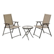 タカショーの**「フレスコ テーブル&チェアー 3点セット」**は、ベランダやバルコニー、庭先でのカフェタイムを気軽に実現する、機能的でスタイリッシュなガーデンファニチャーです。テーブル1台とチェアー2脚がセットになっています。