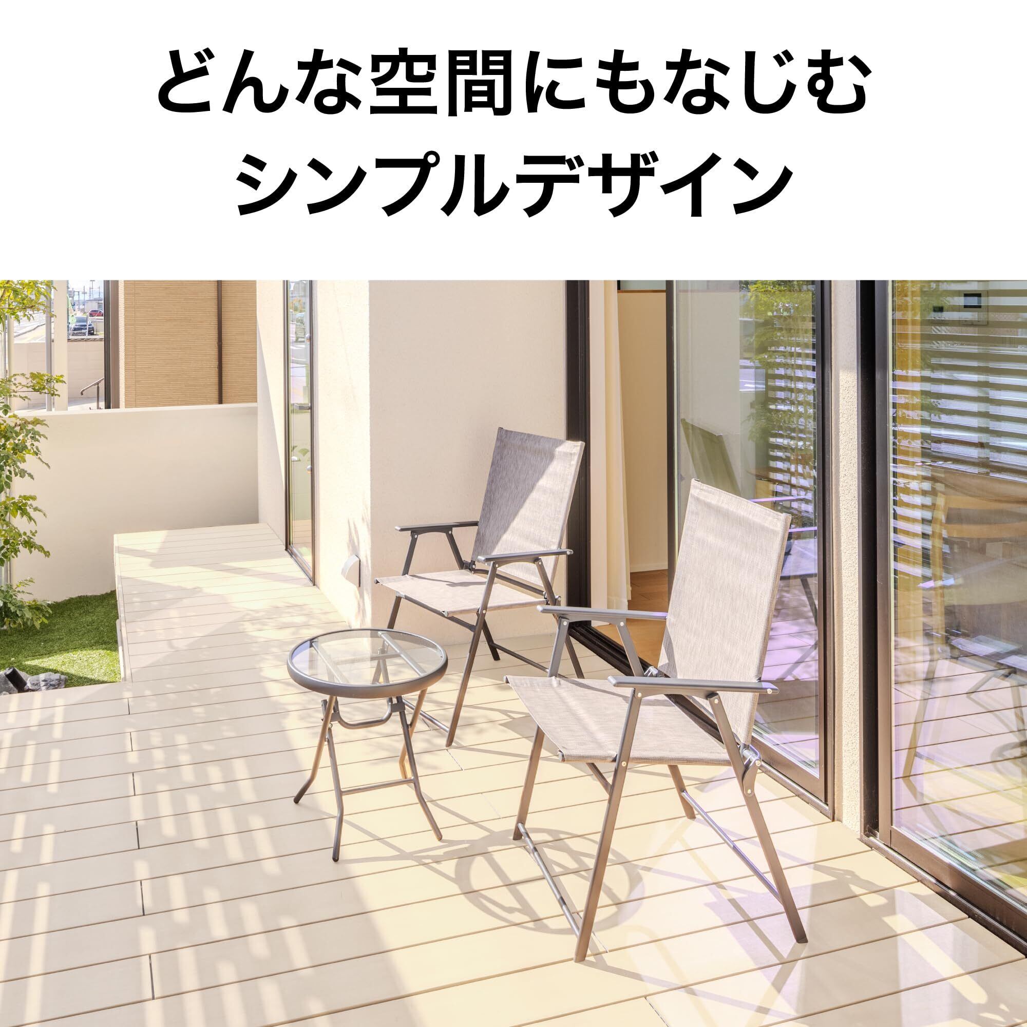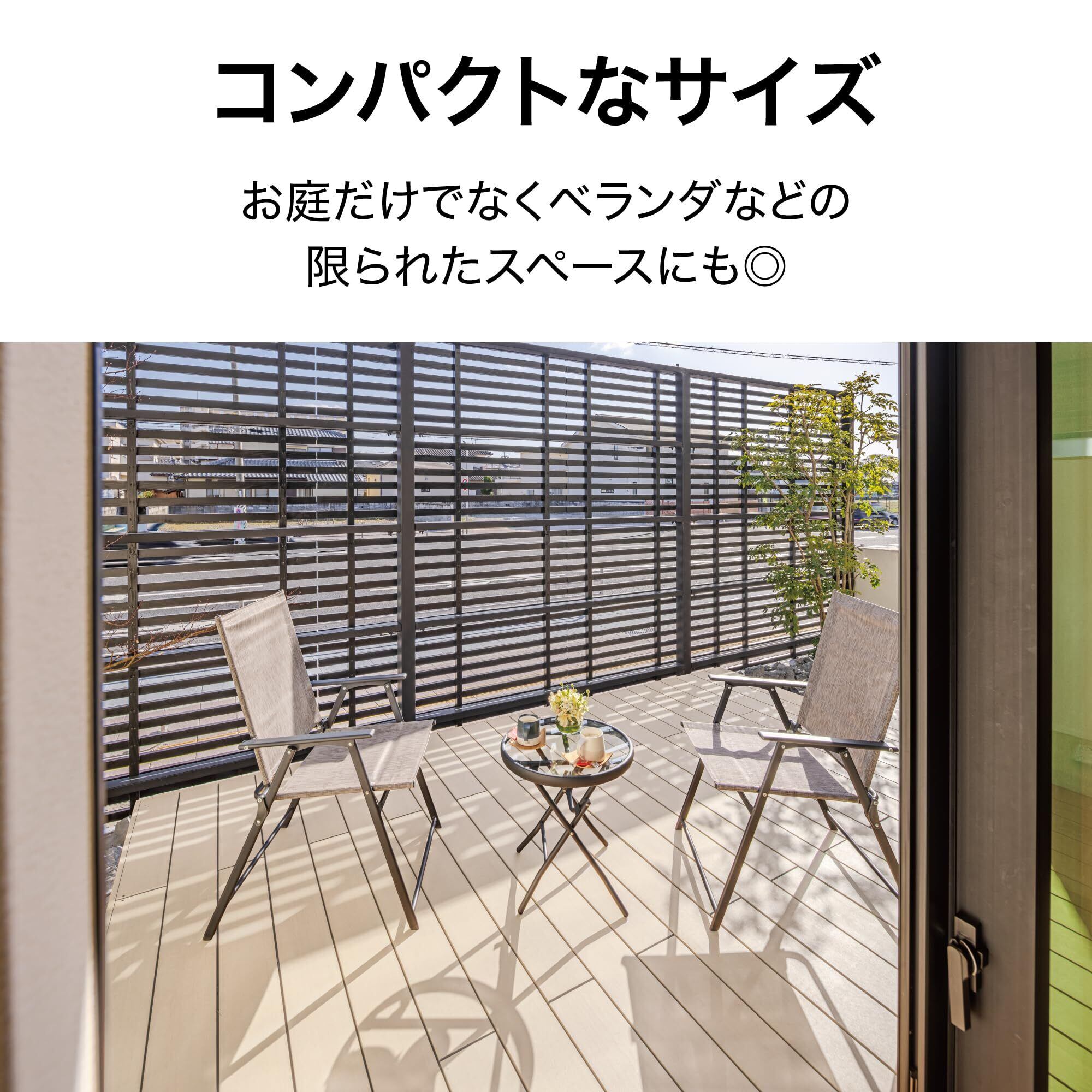 * **省スペース:** テーブルは約幅46cm、チェアーは約幅57cmと、**コンパクト**ながら実用的なサイズ感で、限られたスペースでも活躍します。