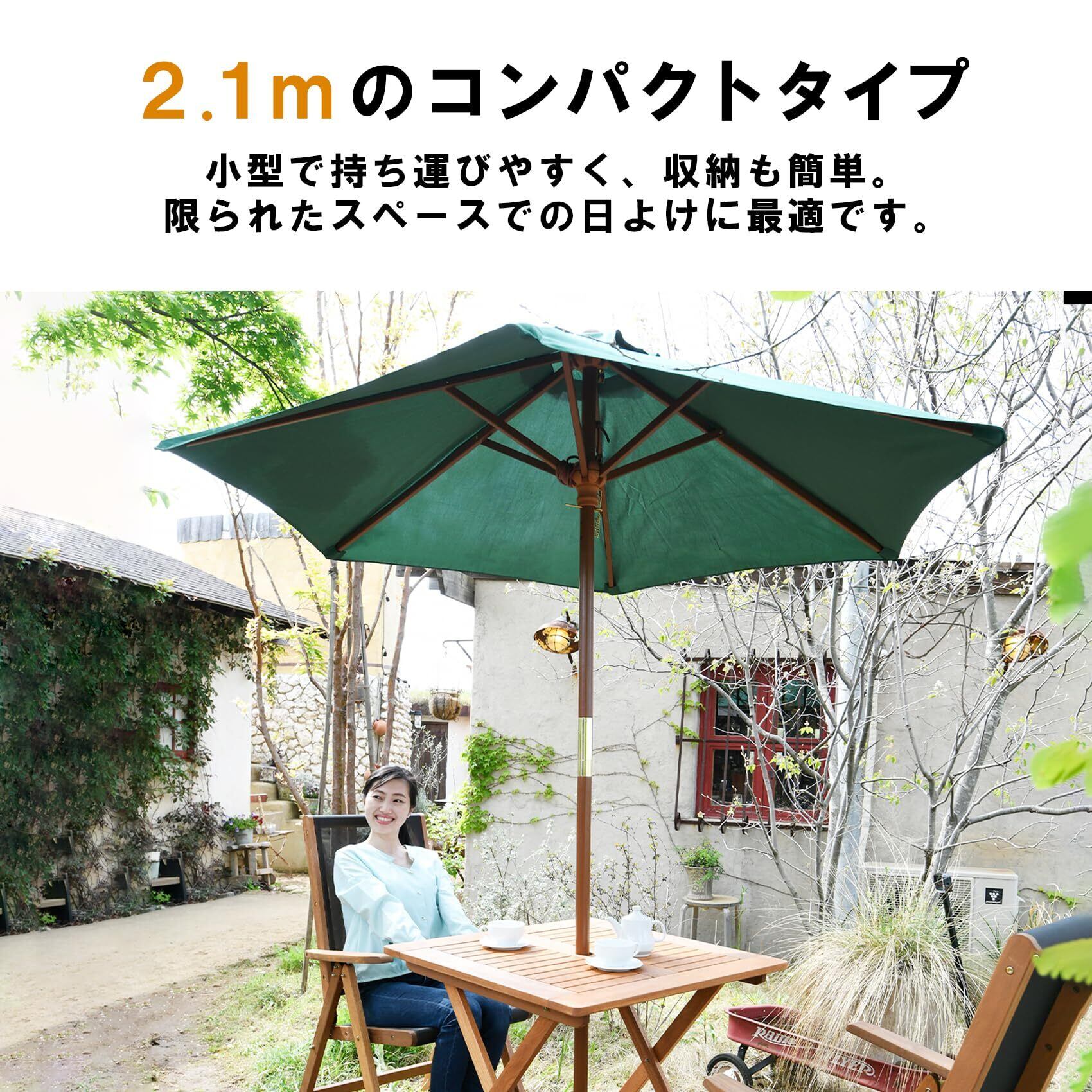 ガーデンマスター(Gardenmaster) ガーデン パラソル 木製パラソル (直径210cm) お庭 ベランダ テラス バルコニー 日よけ 大型 風に強い NMP-21(GR) グリーン