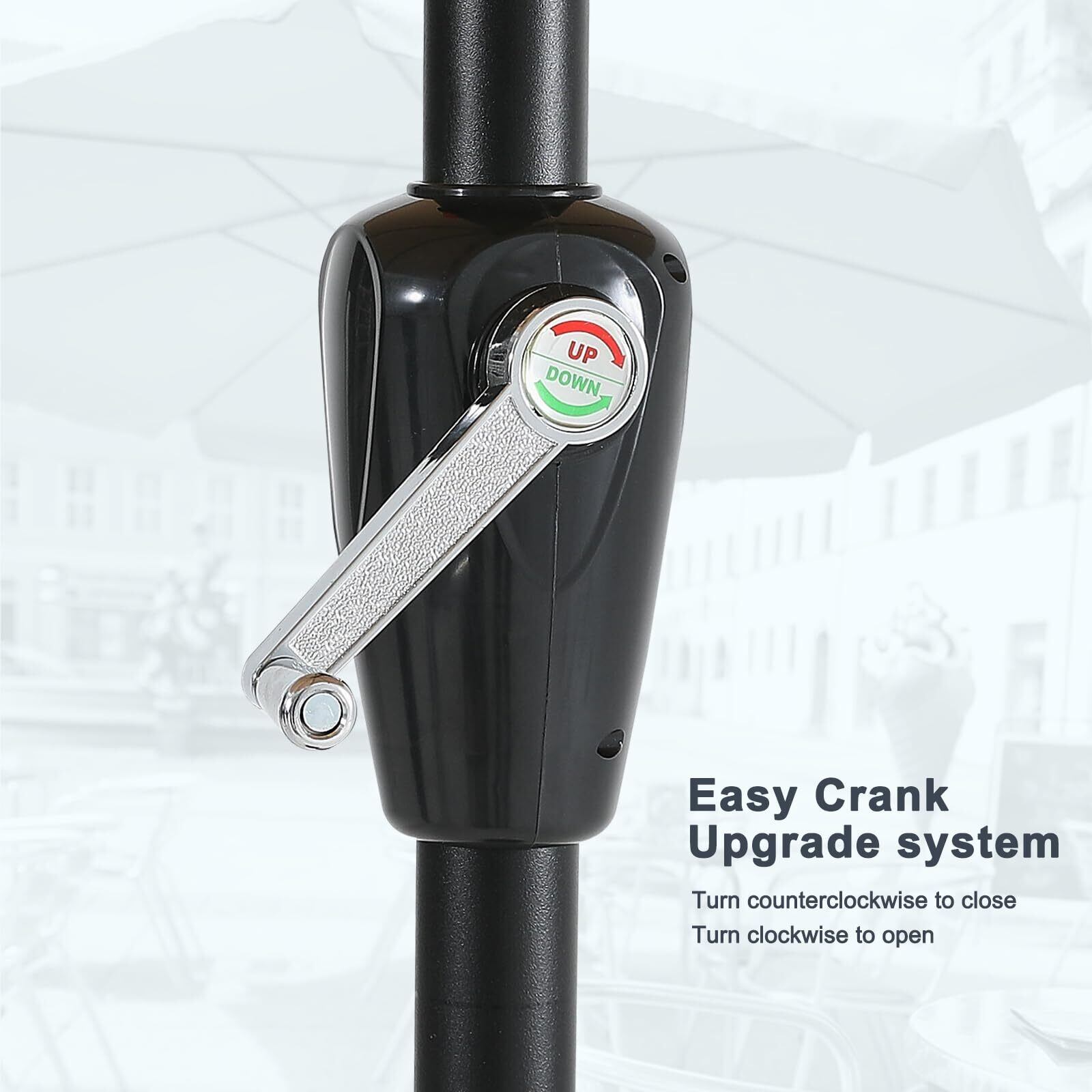 使いやすい機能性:合計8つの優雅なスカラップがデザインされており、日除け効果を高めるだけでなく、庭やテラスに洗練されたアクセントを添えます。また、ハンドルを回すだけで簡単に開閉できる回転式機構を採用。力の弱い方でもスムーズに操作できます。さらにチルト機能で太陽の動きに合わせて角度調節が可能。快適な日陰を作り出し、自然を満喫いただけます。