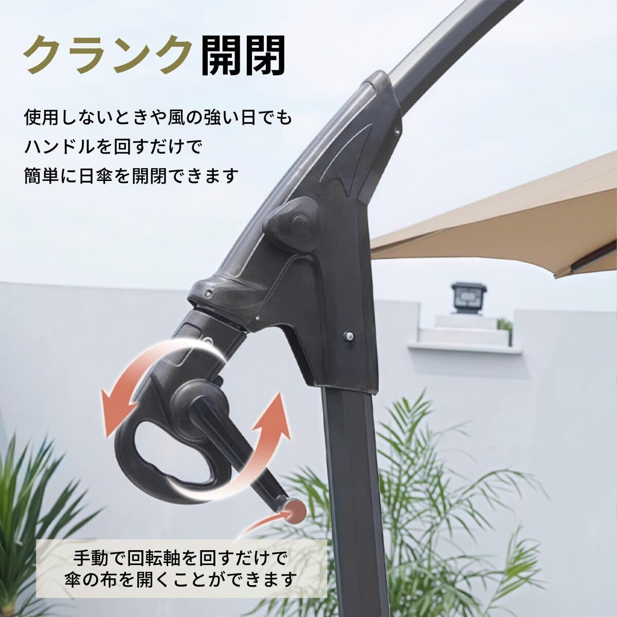 ️【クランク開閉 】パラソルの操作は非常に簡単で、開閉しやすいハンドルタイプ! 折りたたみ収納 、使用しないときや風の強い日でも、ハンドルを回すだけで簡単に日傘を開閉できます。傘カバーが付属しており、収納時に雨やホコリの侵入を防ぐことができます。
