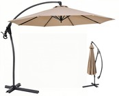 【在庫限り】ガーデンパラソル ビーチパラソル アルミ 直径300cm 大型 吊り下げ式 日傘 クランク開閉 角度調整可能 傘カバーと十字架ベース付き 風に強い UVカット 撥水 庭、公園、ビーチ、テラス、カフェ、屋外イベントに最適 日本語説明書付き