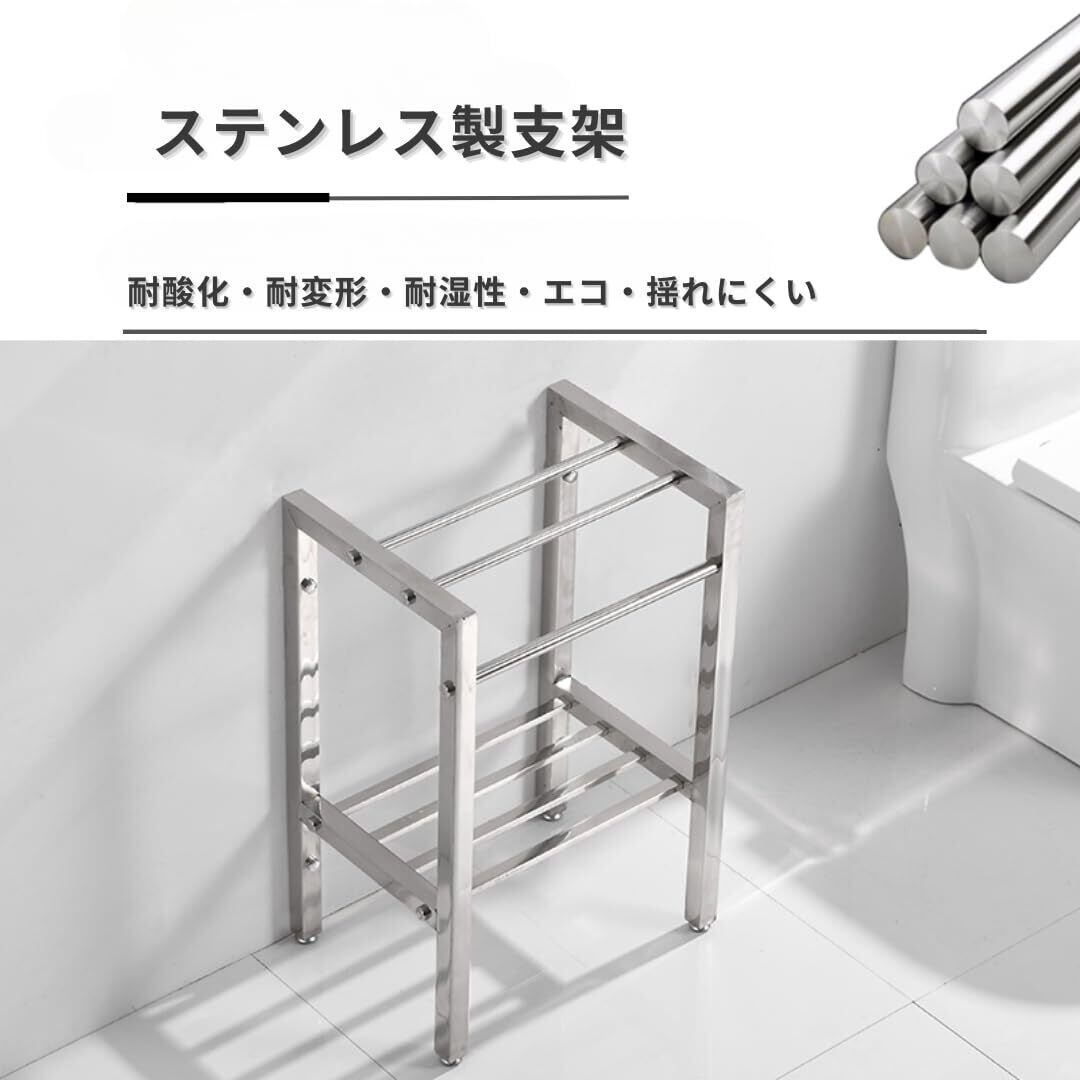 便利な収納スペース:支架部分にはタオルや小物を置けるスペースが設けられており、使い勝手の良いデザインになっています。清潔なタオルをすぐ手元に置くことができ、便利です。