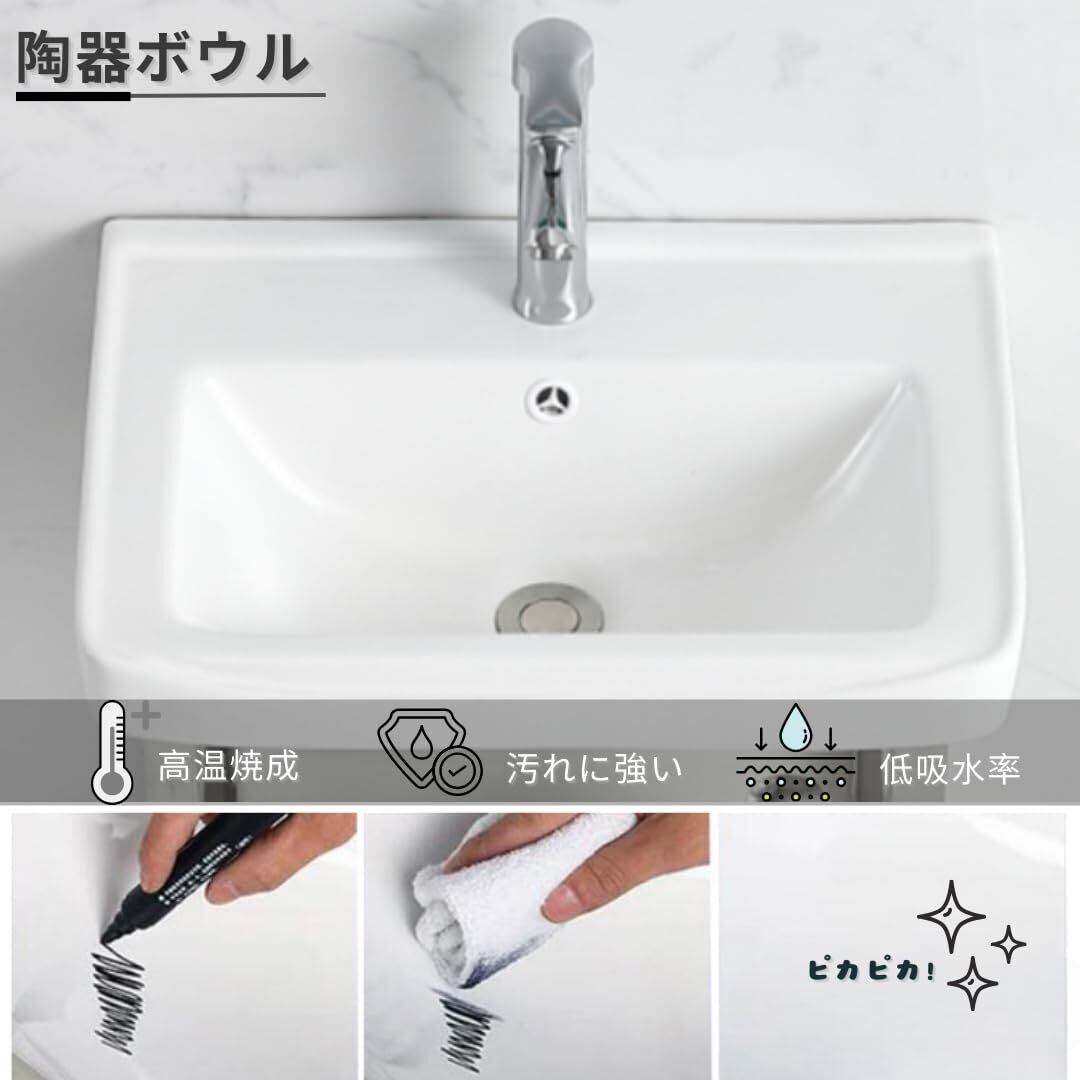 耐久性のある高品質な陶器製:1280度の高温で焼き上げた大容量の一体成形で、表面はお手入れが簡単。セラミック製の底部は滑りにくく、取り付けも簡単です。当社の製品には、セラミック洗面器、ブラケットのほか、温水・冷水対応の蛇口、排水口、排水管、給水管が含まれており、さらに取り付け用の手袋もお付けしています。