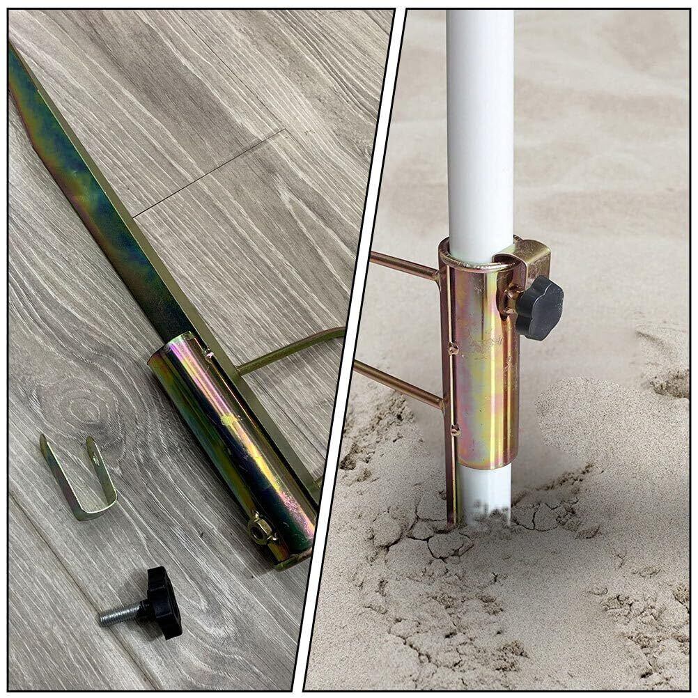 【ビーチや庭先に最適】砂浜や庭先での使用に最適で、パラソルを簡単に設置できます。アウトドアやガーデニングに便利なアイテムです。