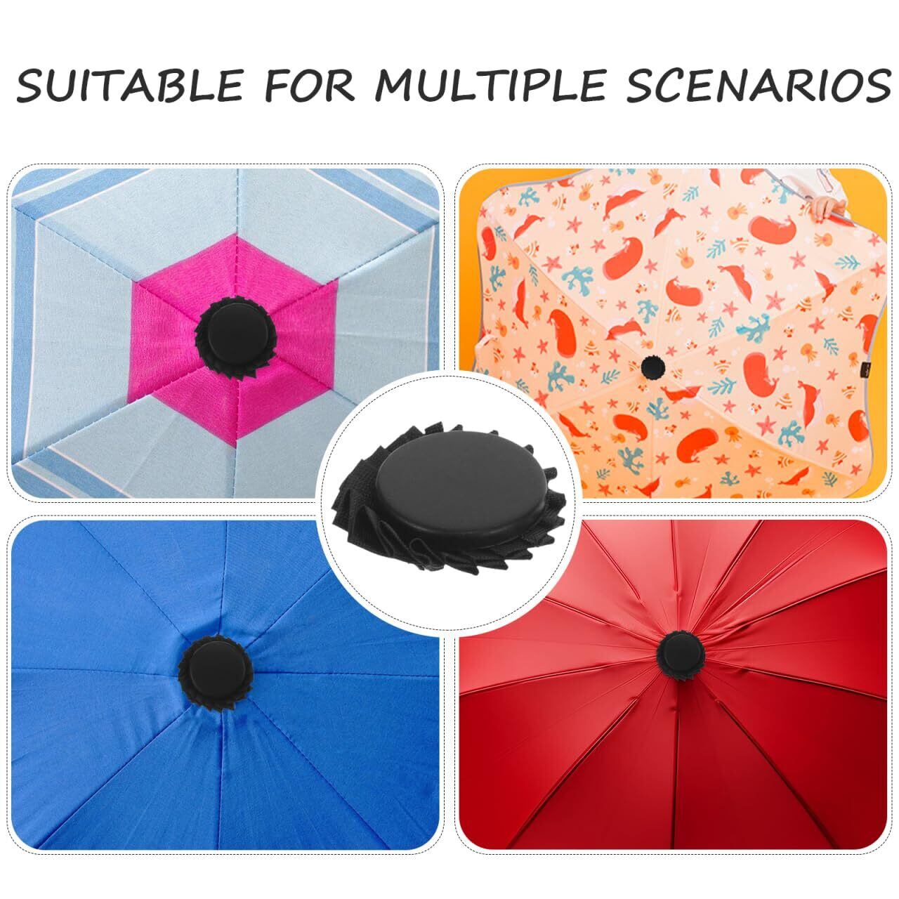 美観向上効果:使用していない時でも傘の先端を覆うことで見た目を整え、傘全体の美しさを保ちます。シンプルながら便利なデザインで多様なスタイルに対応可能です。