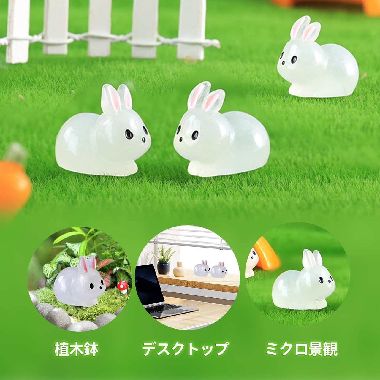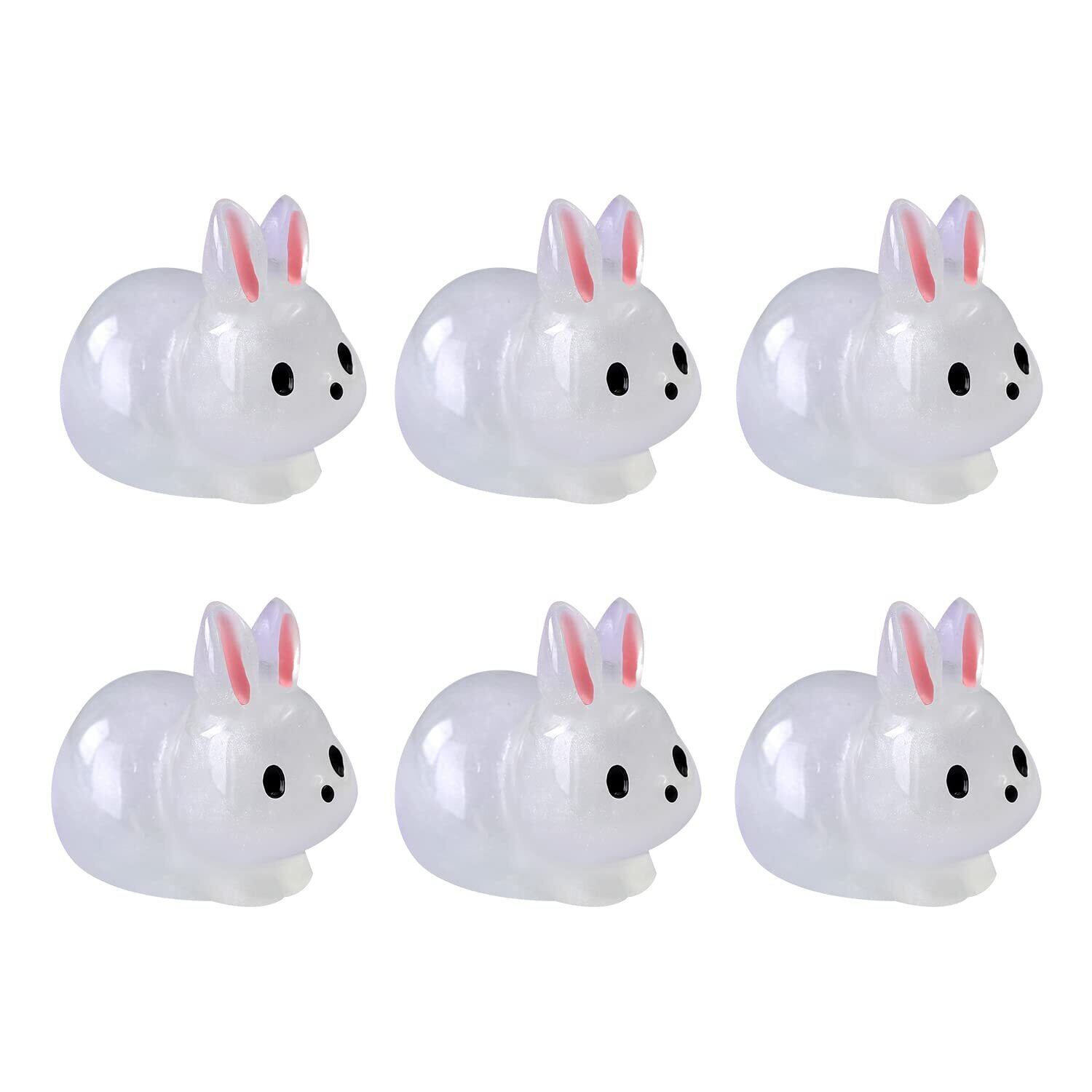 樹脂装飾 樹脂発光 置物 ミニ発光うさぎ ミニ樹脂ウサギ 6個入り ミニチュア苔風景 Diy 工芸家の装飾のための装飾品クラフト オーナメント アクセサリー 室内装飾