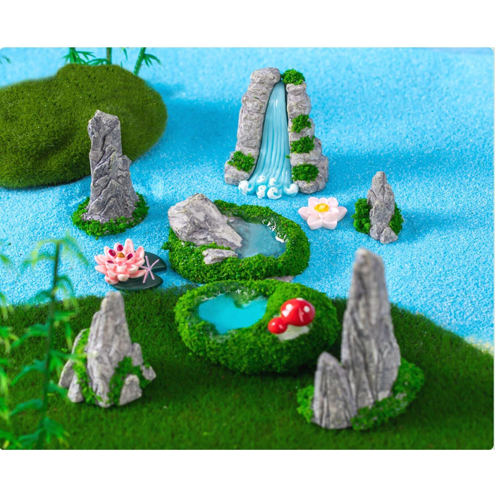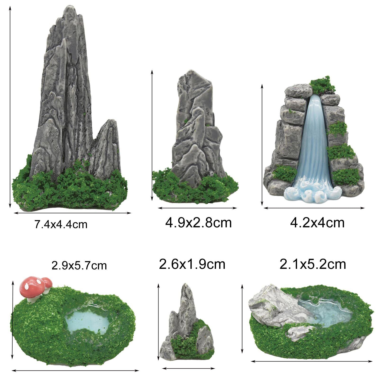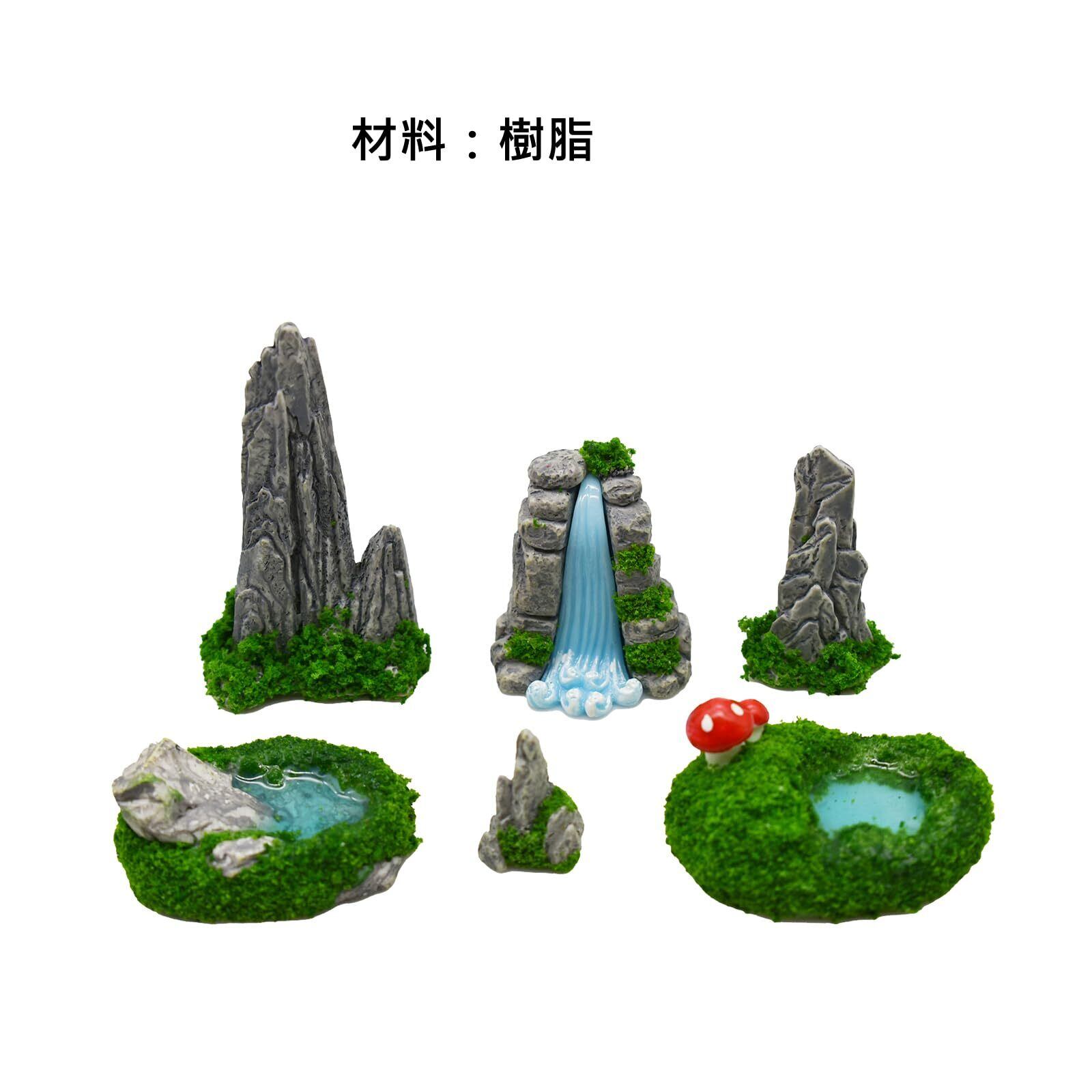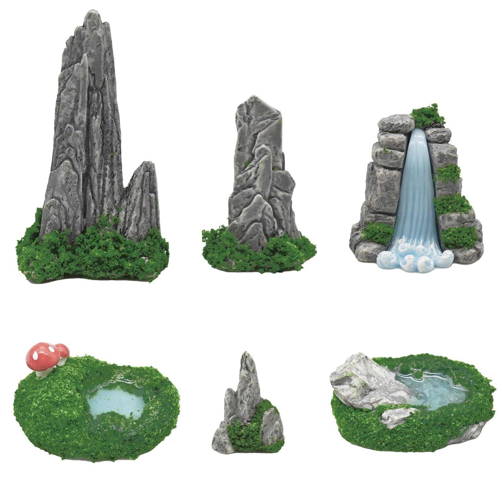 6個 フィギュア ミニチュア 景観装飾 DIY 山モデル 築山 池の小彫像 人造樹脂 山と池 神仙禅宗 花園盆栽 ドールハウス 仙女の花園 盆栽工芸 盆栽テラリウム ランドスケープデコ 妖精の庭 小さな彫刻 フェイク ロッカリー プレゼント お土産 2-7cm