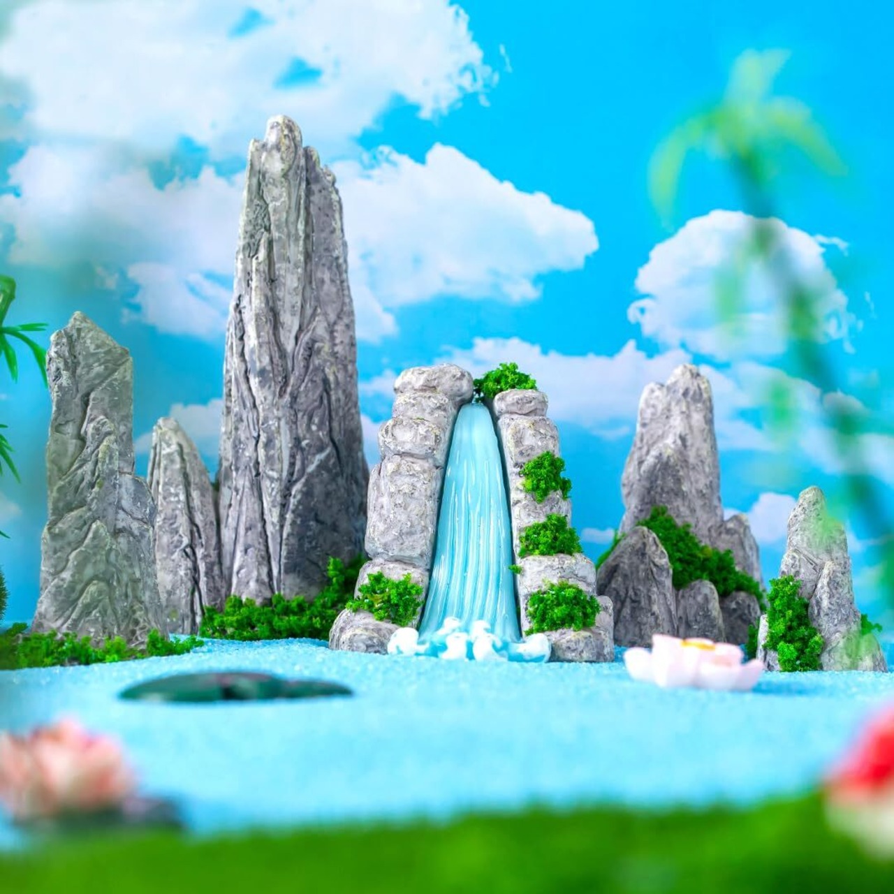【2025最新】6個 フィギュア ミニチュア 景観装飾 DIY 山モデル 築山 池の小彫像 人造樹脂 山と池 神仙禅宗 花園盆栽 ドールハウス 仙女の花園 盆栽工芸 盆栽テラリウム ランドスケープデコ 妖精の庭 小さな彫刻 フェイク ロッカリー プレゼント お土産 2-7cm