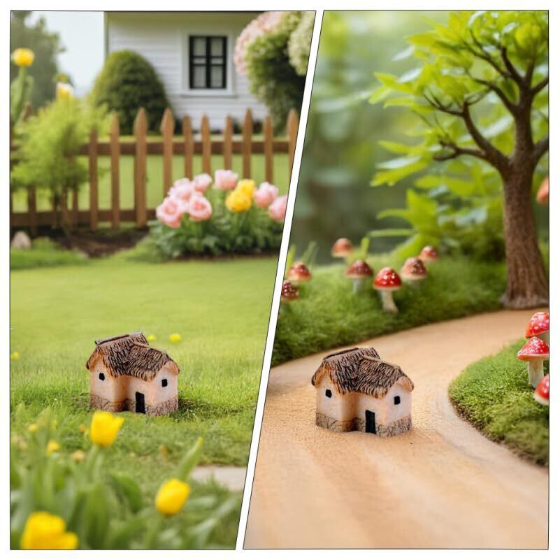 樹脂製の家の模型。樹脂素材で作られており、環境に優しく、色あせや変形がなく、耐久性があります。工芸品用のミニチュアハウス。このアイ はミニハウスの装飾です。風景の装飾。ミニチュア風景の家は、ミニチュアガーデン、テラリウム、コン 、植 、ドールハウス、 のシーンに適しており、妖 世界を構築できます。