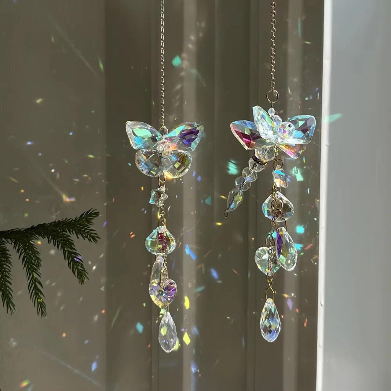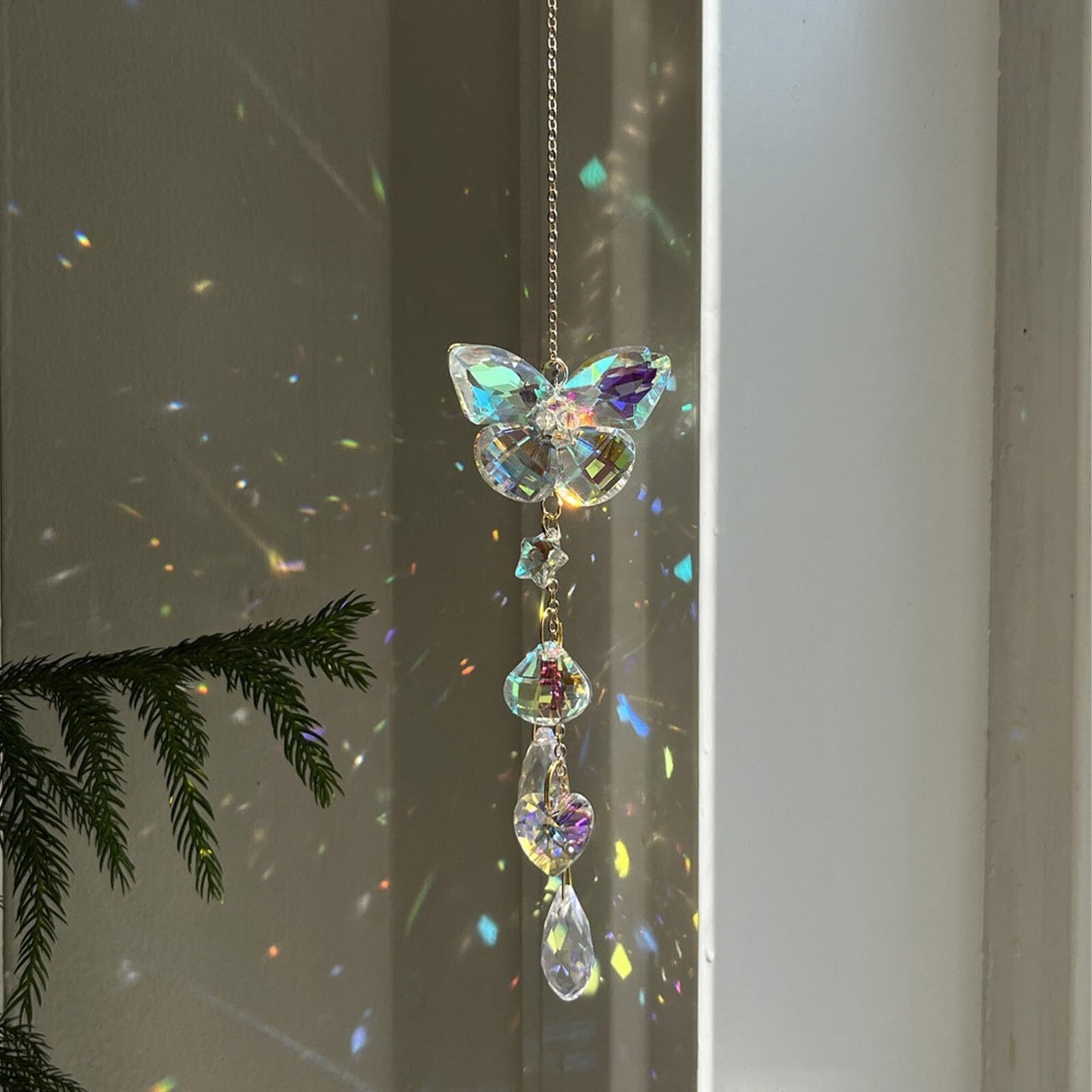 【鮮やかな色】バタフライクリスタルサンキャッチャーは光をよりよく反射し、キラキラ輝くレインボーライトを提供します。窓に掛けると、壁、床、テーブルにカラフルな光を反射し、ロマンチックで夢のような雰囲気を演出します。