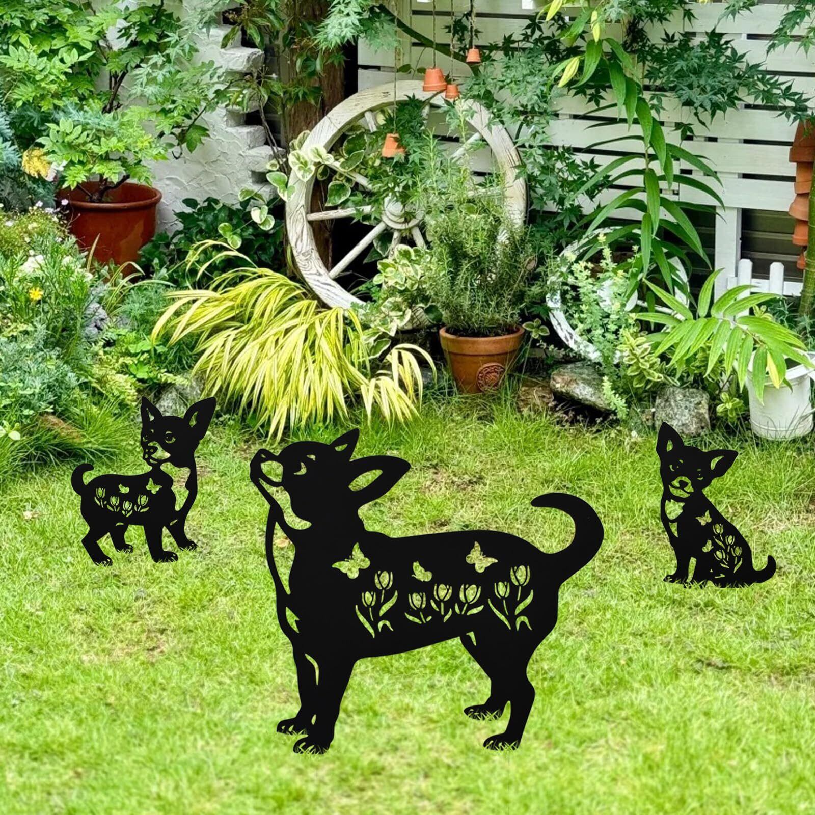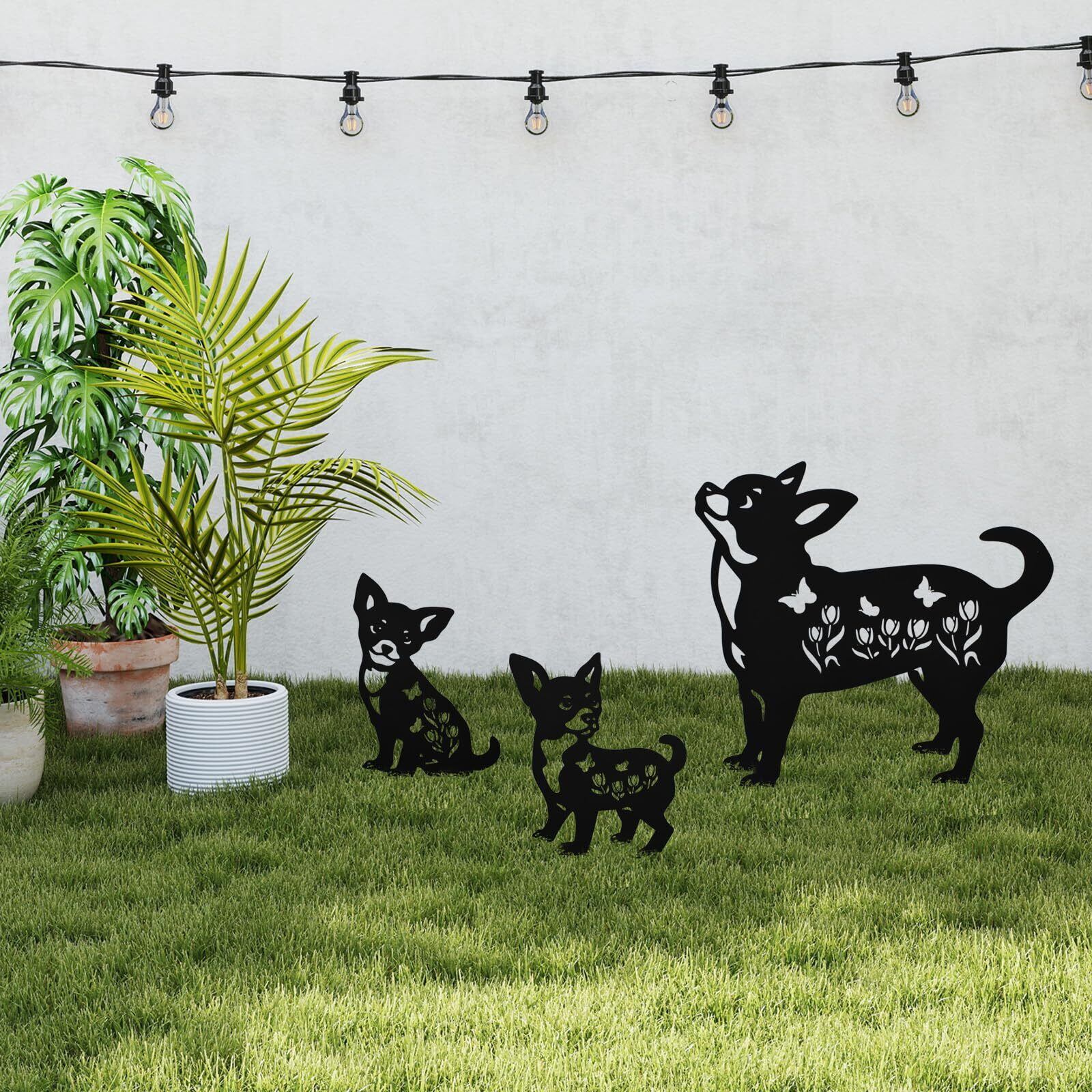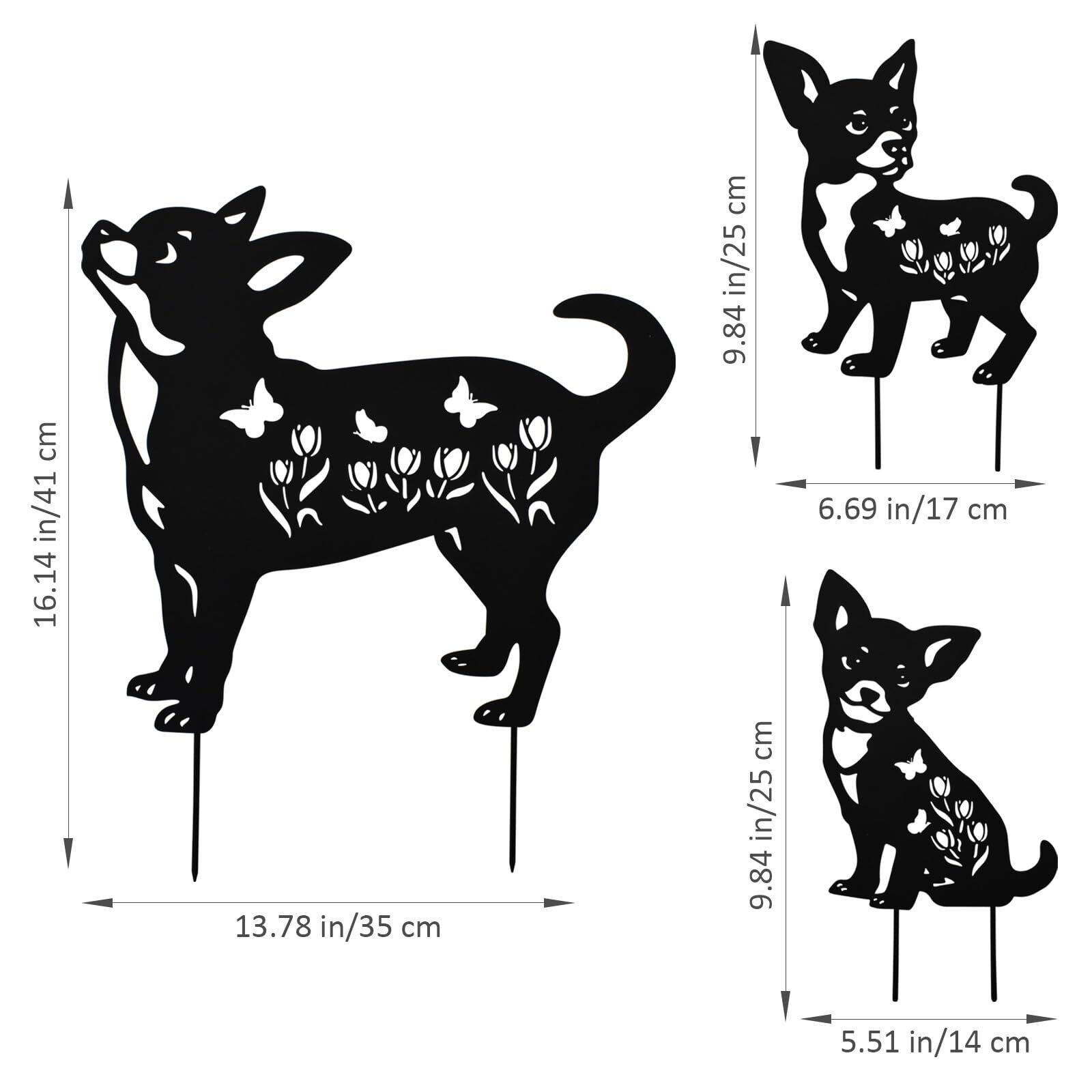 MrMrKura ガーデニング 置物 犬 アイアン 3点セット ガーデンオブジェ チワワ シルエット プレート 動物 彫刻 ガーデン 飾り ガーデンピック ガーデニング雑貨 オーナメント