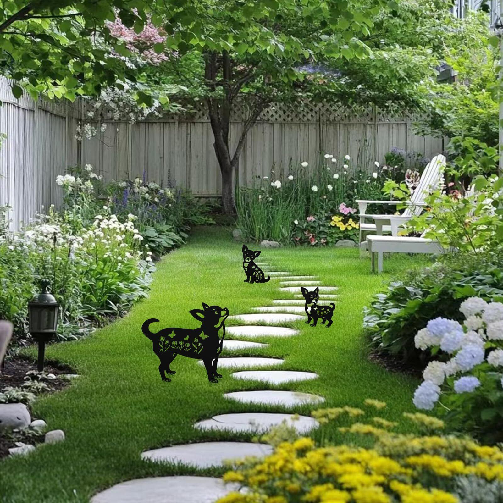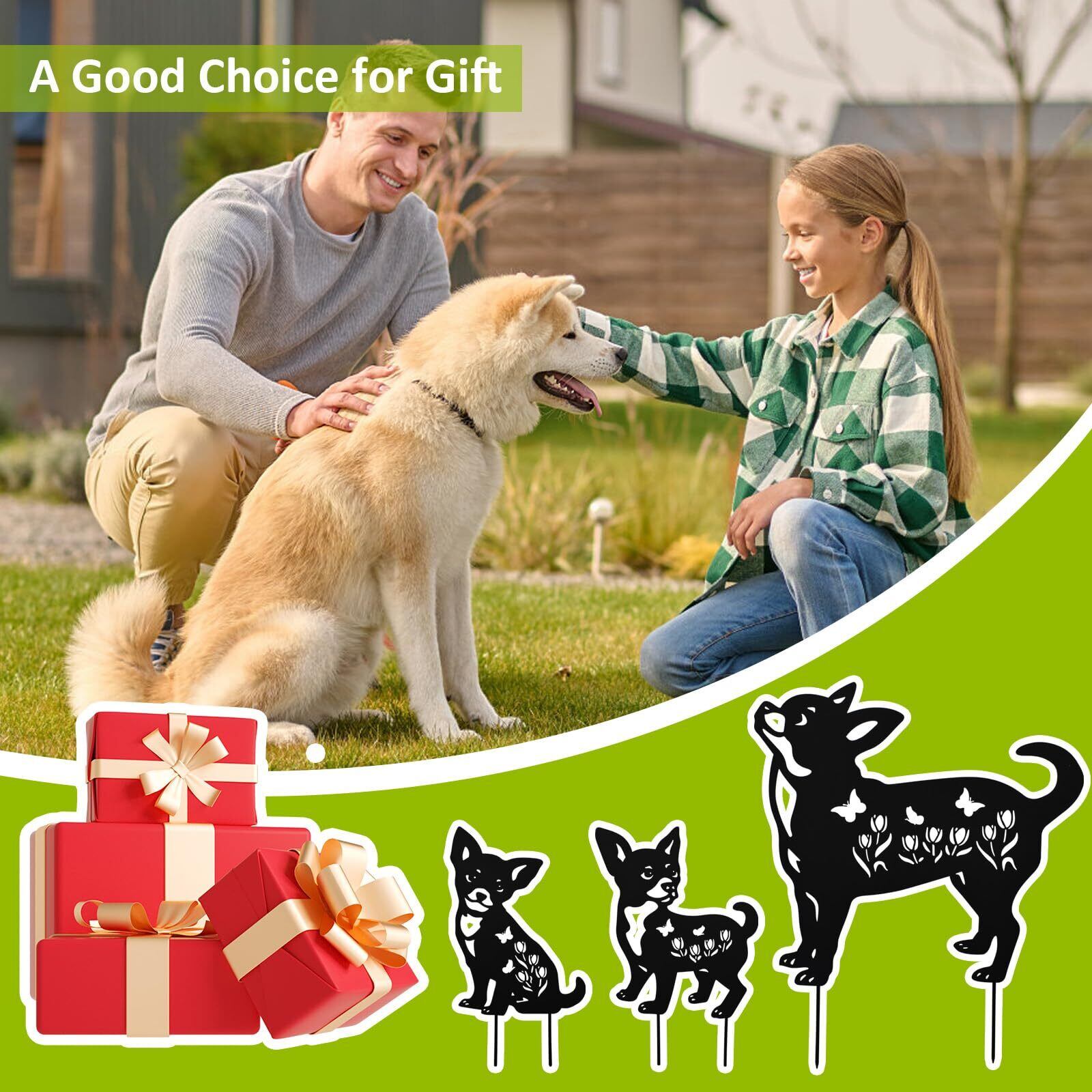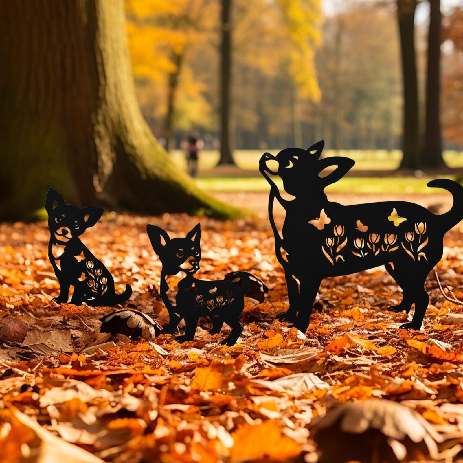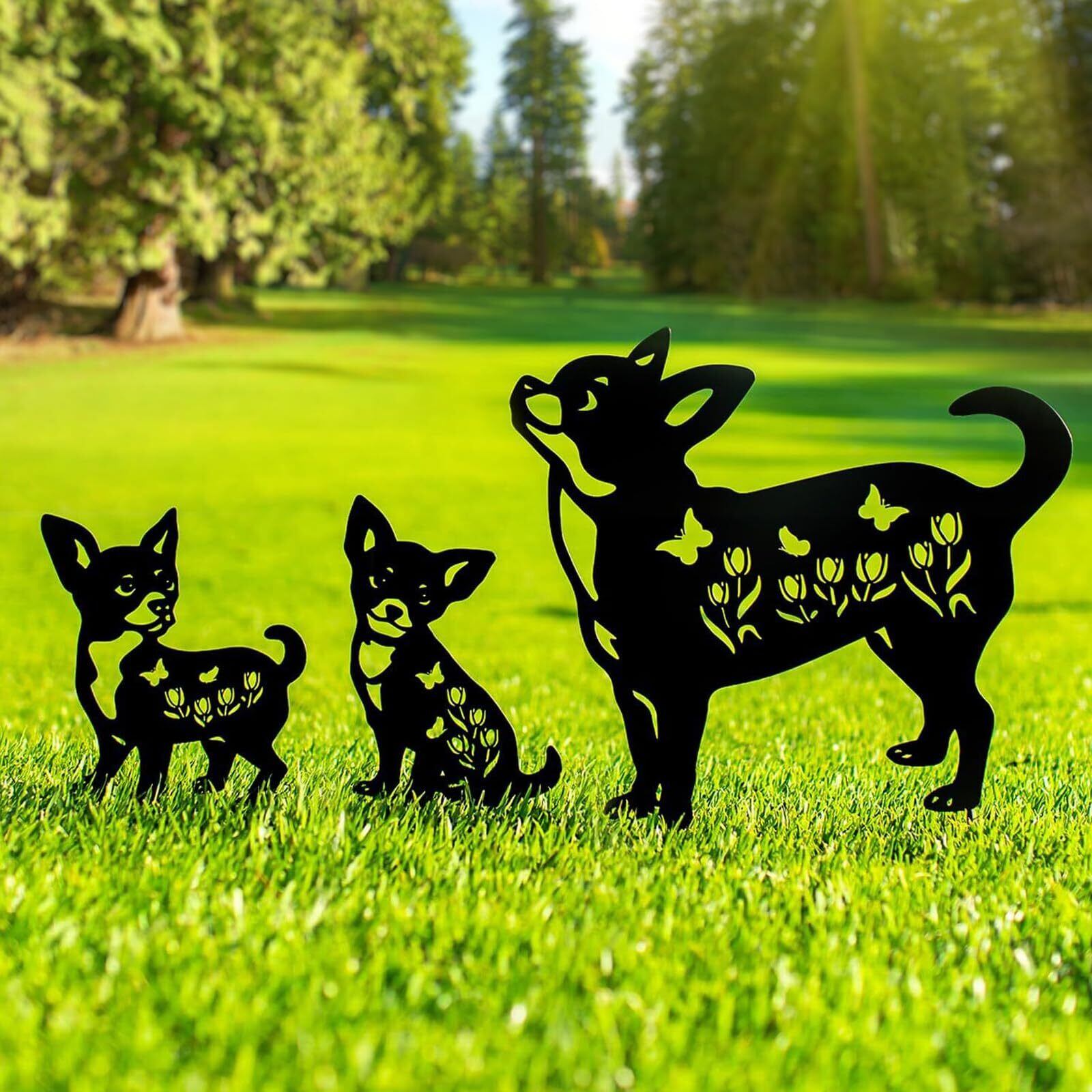 MrMrKura ガーデニング 置物 犬 アイアン 3点セット ガーデンオブジェ チワワ シルエット プレート 動物 彫刻 ガーデン 飾り ガーデンピック ガーデニング雑貨 オーナメント