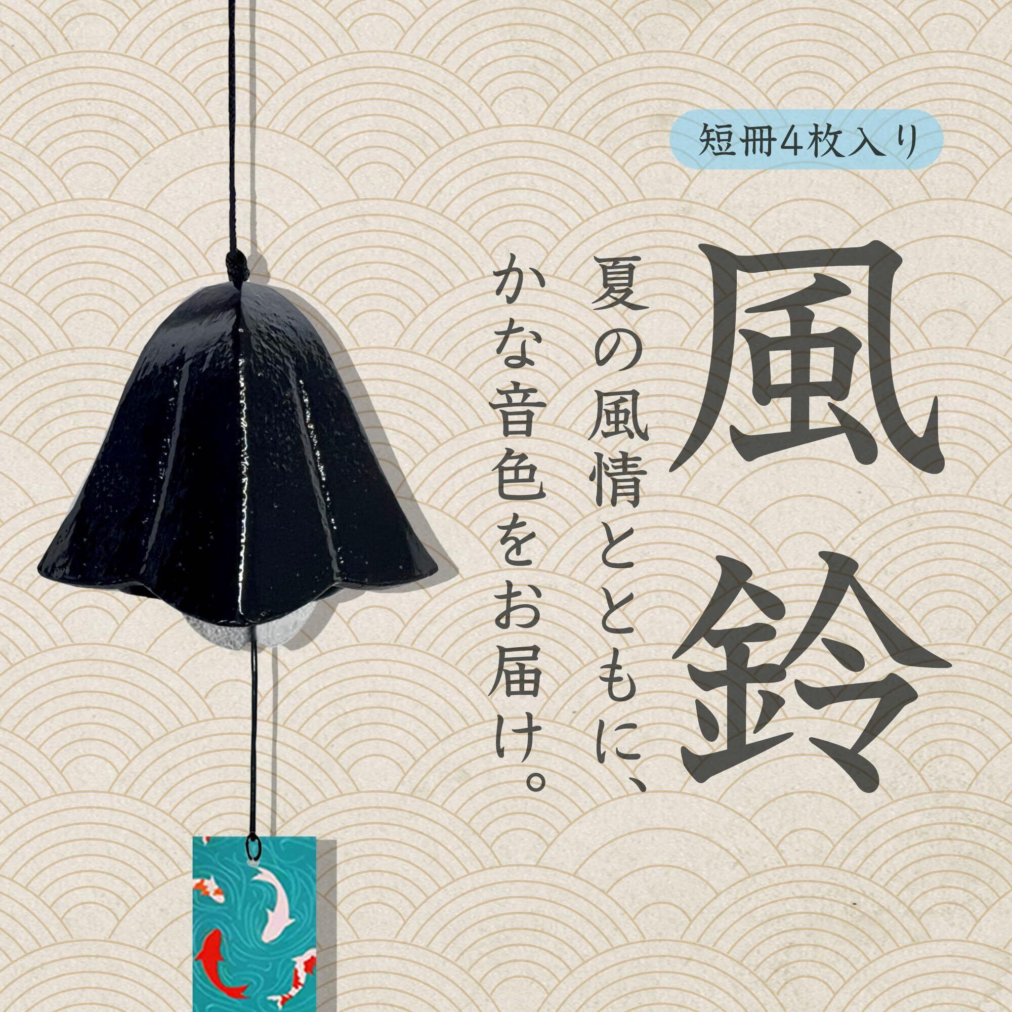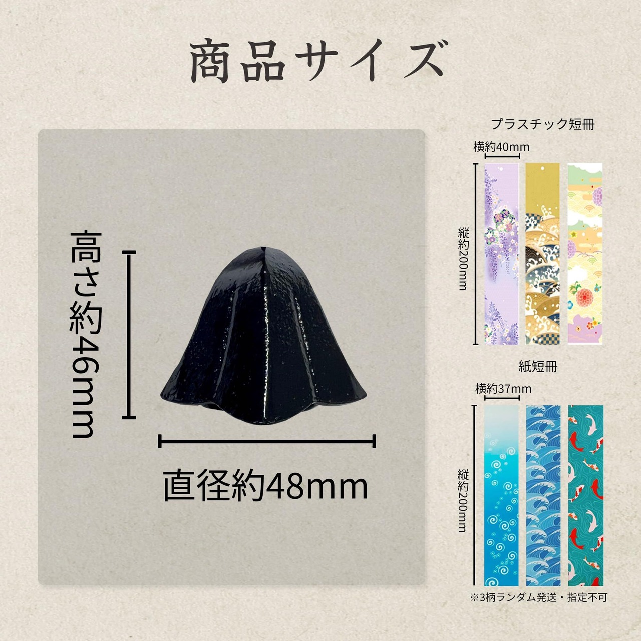 【短冊4枚入りで付け替え可能】鉄製風鈴の短冊は、素材やデザインによって雰囲気や音の響きが変わります。伝統的な紙の短冊は、柔らかく風情のある見た目で、やさしく揺れるたびに繊細な音色を引き立てます。一方、プラスチック短冊は耐久性が高く、屋外でも長く使用できるのが魅力です。 飾る場所や季節に合わせて、紙とプラスチックの短冊を使い分けることで、風鈴の楽しみ方が広がります。好みに合う短冊を組み合わせて、風鈴の音色とともに日本の風情を感じてみましょう。 ※紙短冊: 1枚(本体つき)、3柄ランダム発送・指定不可。 ※プラスチック短冊:3柄各1枚ずつ入り、柄の組み合わせは選べません。予めご了承ください。