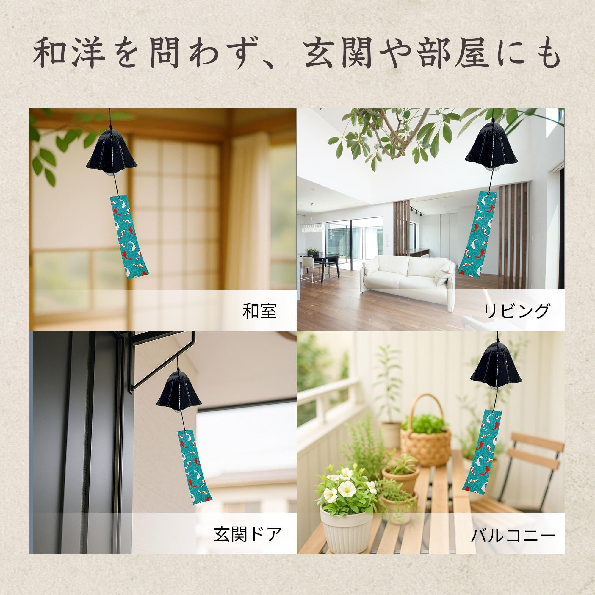 【落としても割れにくい鉄の風鈴】鉄製の風鈴は、落としても割れにくいのが大きな特徴です。鉄は強度が高く、落としても割れにくく、少々の衝撃では壊れません。 ただし、強くぶつけると塗装が剥がれたり錆びやすくなるため、定期的に乾いた布で拭くことをおすすめします。