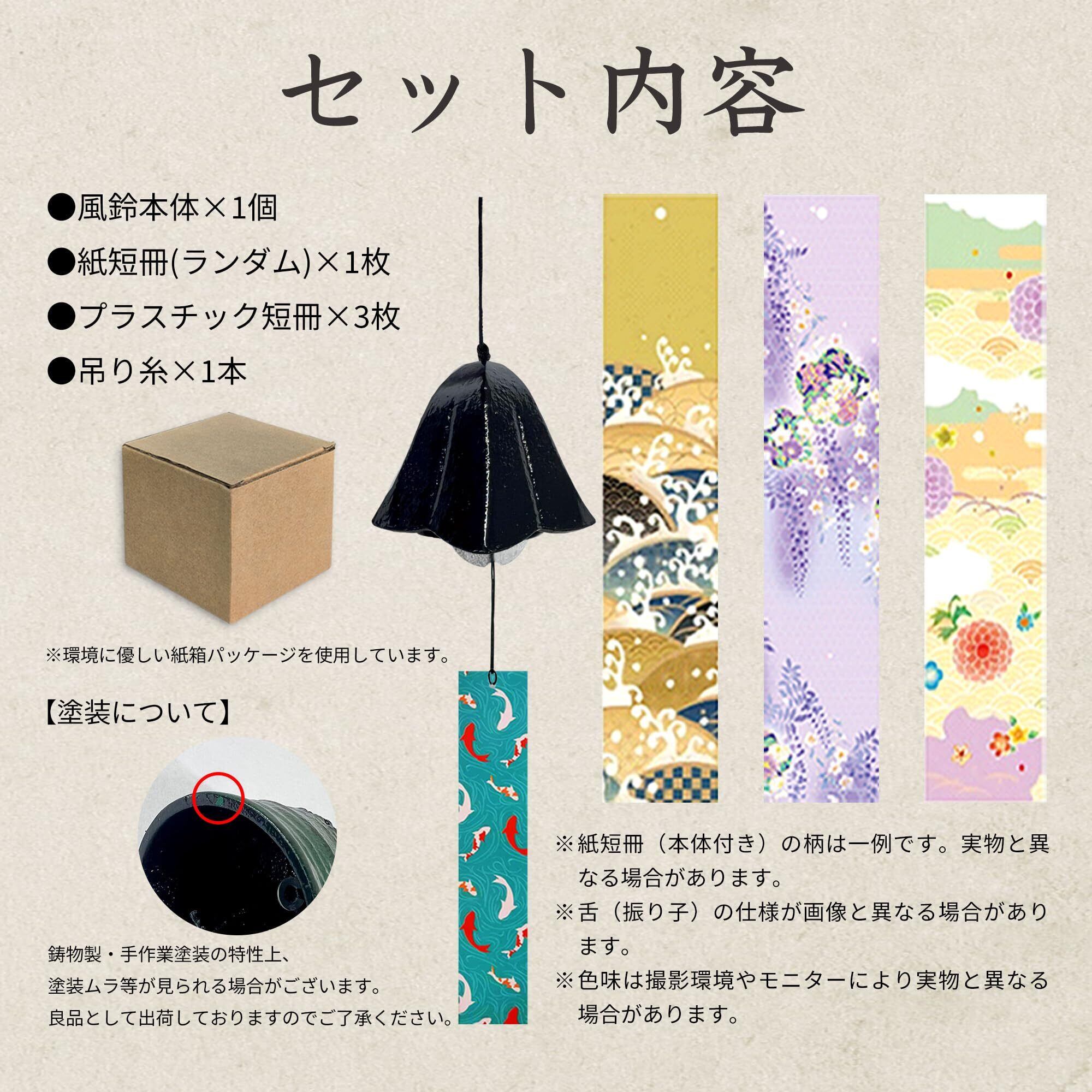 ※【個体差について】 本製品は、職人の手によって一つ一つ丁寧に作られた鉄製の風鈴です。手作りのため、風鈴の色味や形状には若干の個体差がございます。また、若干の歪みや凹凸が見られることがありますが、使用上の問題はございません。