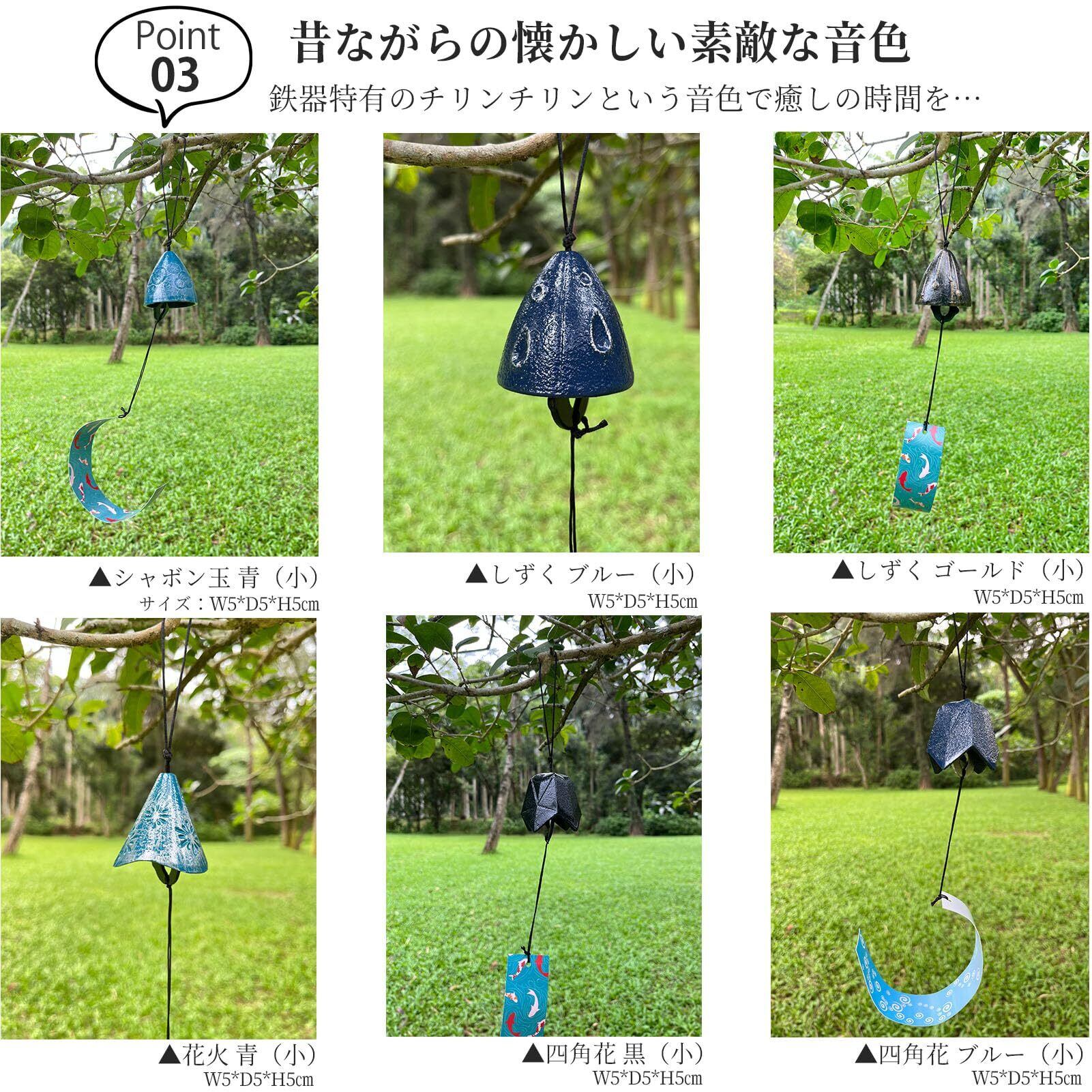 【昔ながらの懐かしい素敵な音色】ガラスの風鈴とはまた違った、伝統の技が奏でる高く澄んだ音色が特徴的な鋳鉄風鈴。いくつもの音が複雑に重なった和音のような音が響く。チリンと鳴るその深く美しい音色が心を落ち着かせてくれる。