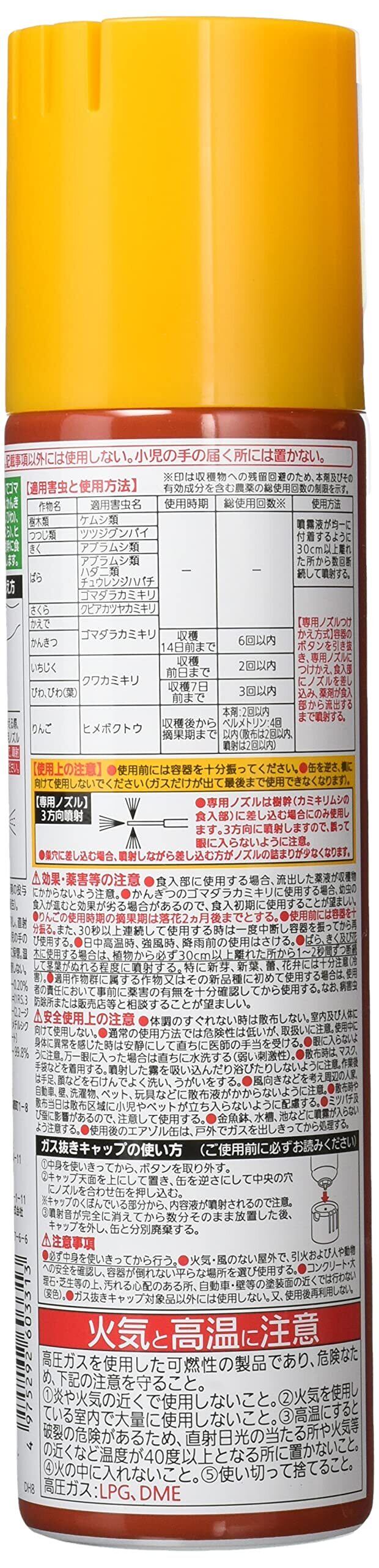 ※使用に当っては金魚鉢、水槽、池などに噴霧が入らないよう注意してください。