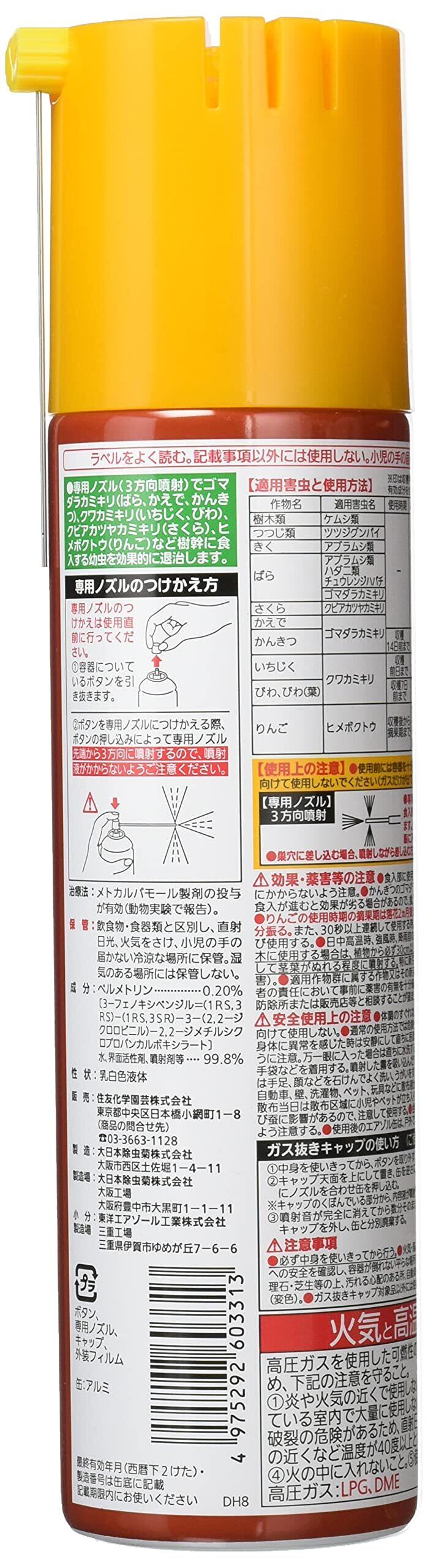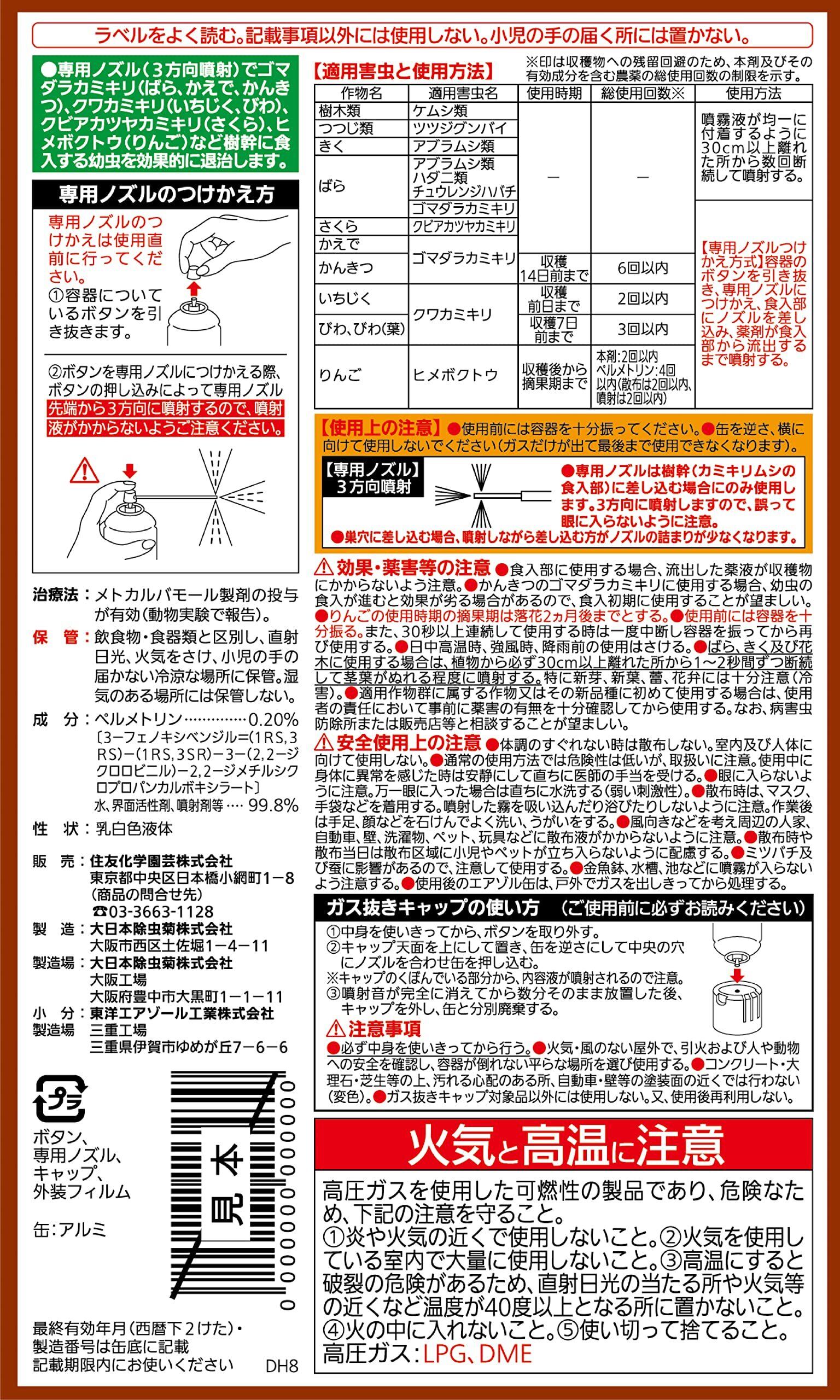 ※ばら、きく及び花木に使用する場合は、植物から必ず30cm以上離れた所から1~2秒間ずつ断続して茎葉がぬれる程度に噴射してください。