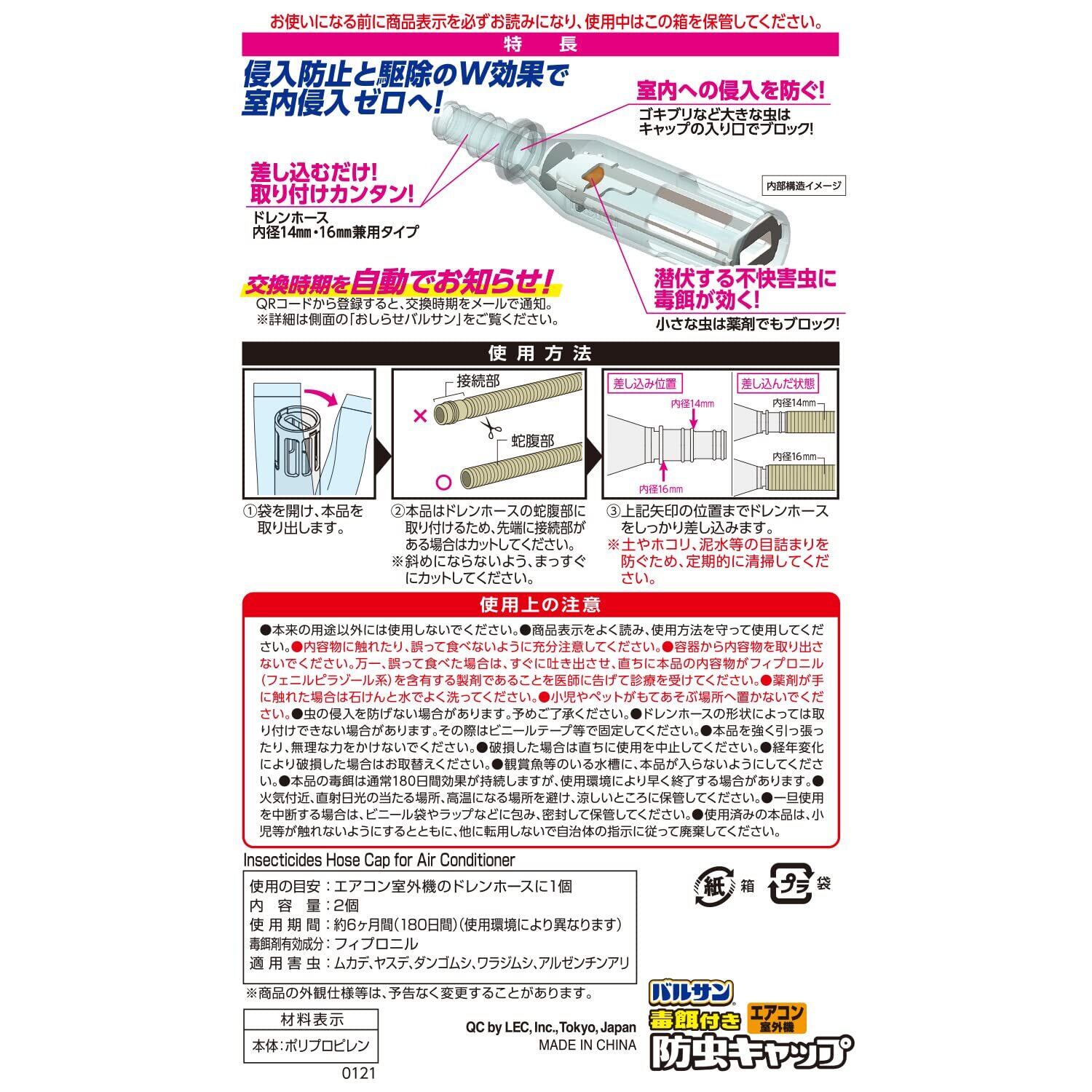 バルサン エアコン室外機用 毒餌付き 防虫キャップ (2個入) /侵入防止と毒エサによる駆除のW効果で室内侵入ゼロへ/