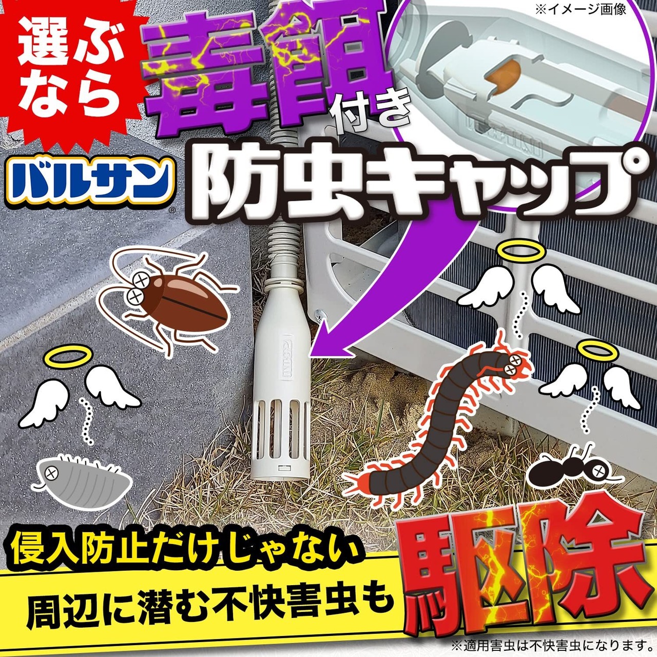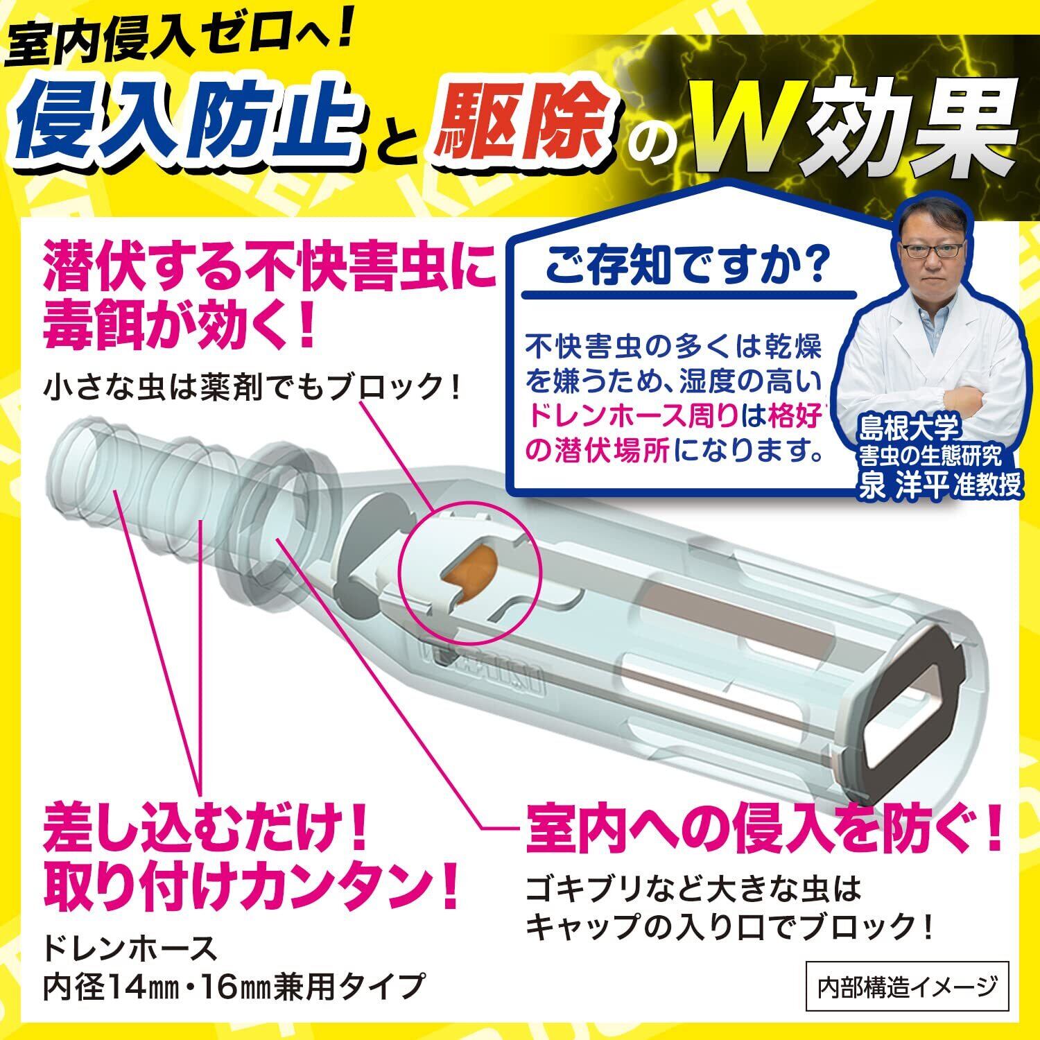 ●キャップをつけても隙間から侵入してくる小さな虫も、キャップに内蔵された毒餌で駆除。