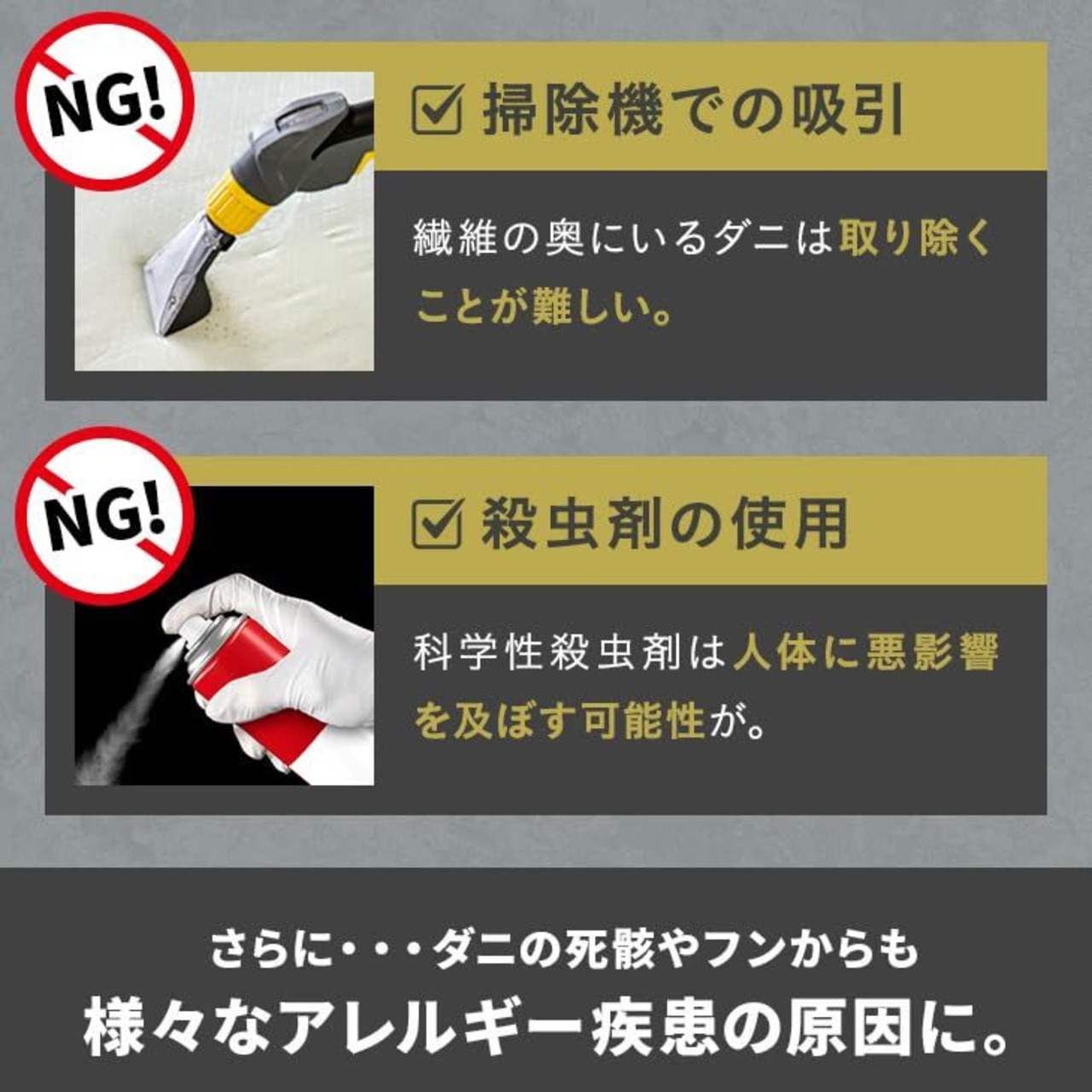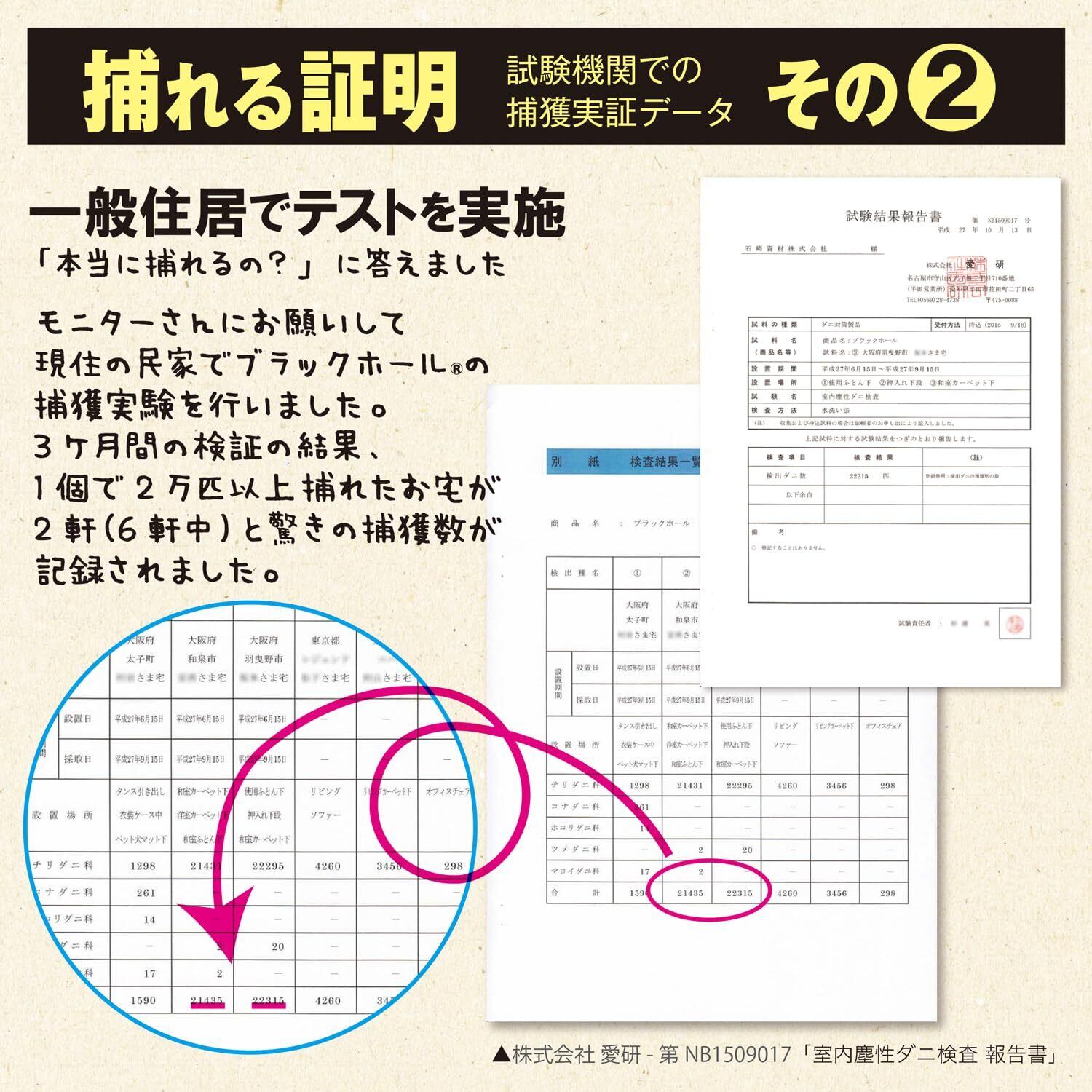【使用後の処理も簡単】ブラックホールの繁殖抑制効果でダニは繁殖できずにやがて死滅し、小児喘息、アレルギー性疾患の原因の1つであるダニの死骸や糞が出てこない殺虫剤不使用の清潔構造。使用後はゴミ箱に捨てるだけなので処理も簡単です。