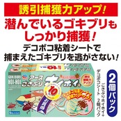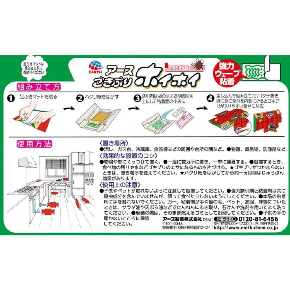 ●足ふきマットで、粘着力を弱める油分、水分をしっかり吸収し、ゴキブリの手足や体がめり込むデコボコ粘着シートで、捕まえたゴキブリを逃がしません。