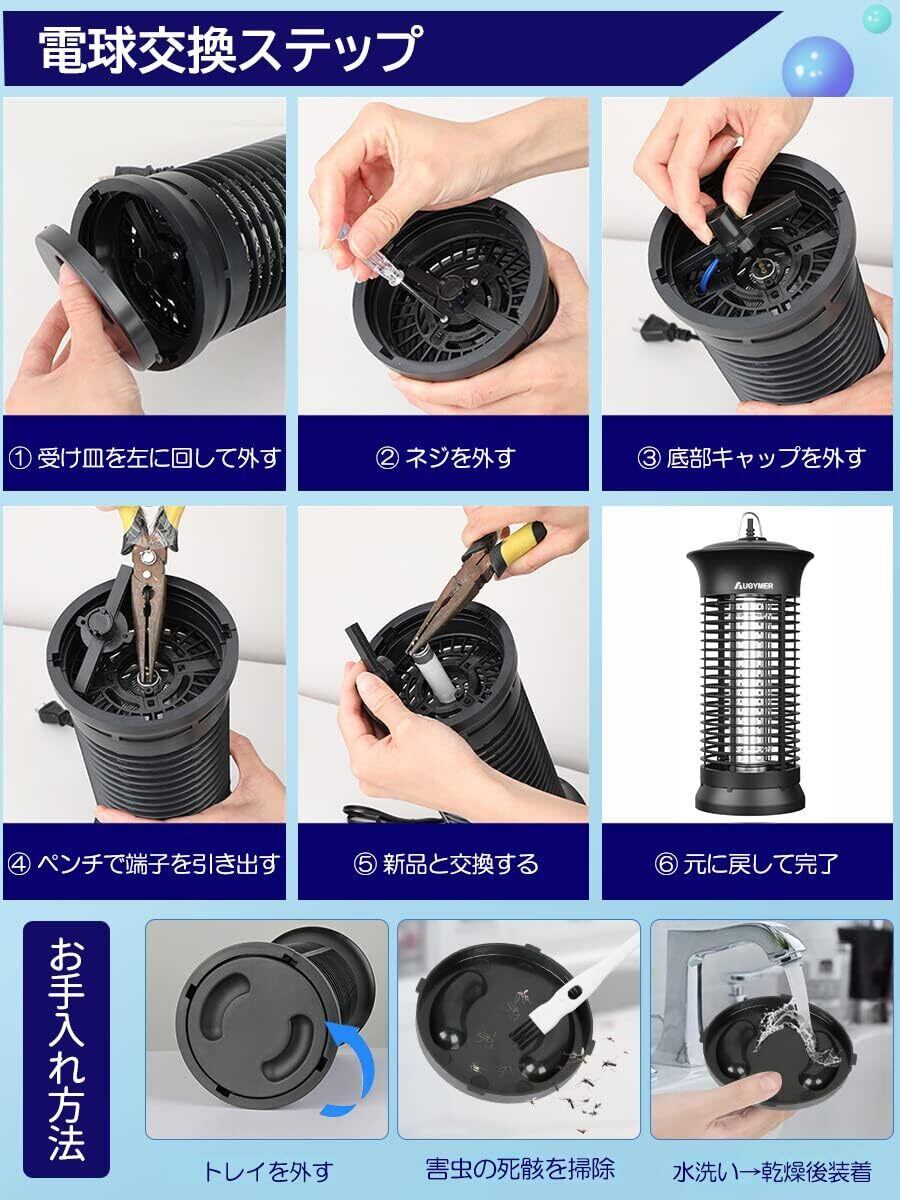 AUGYMER 電撃殺虫器 捕虫器 ライト コバエ取り機 こばえとり 2Mコード付き 360°強力蚊除け UVランプ 蚊取り器 蚊取り機 蚊よけ ハエ取り ハエとり器 蚊 対策 こばえとり コバエトリ 省エネ 薬剤不要 室内 寝室/居間/台所/玄関/居間/飲食店などに対応 お手入れ簡単 掃除ブラシ&交換用電球&日本語説明書付き