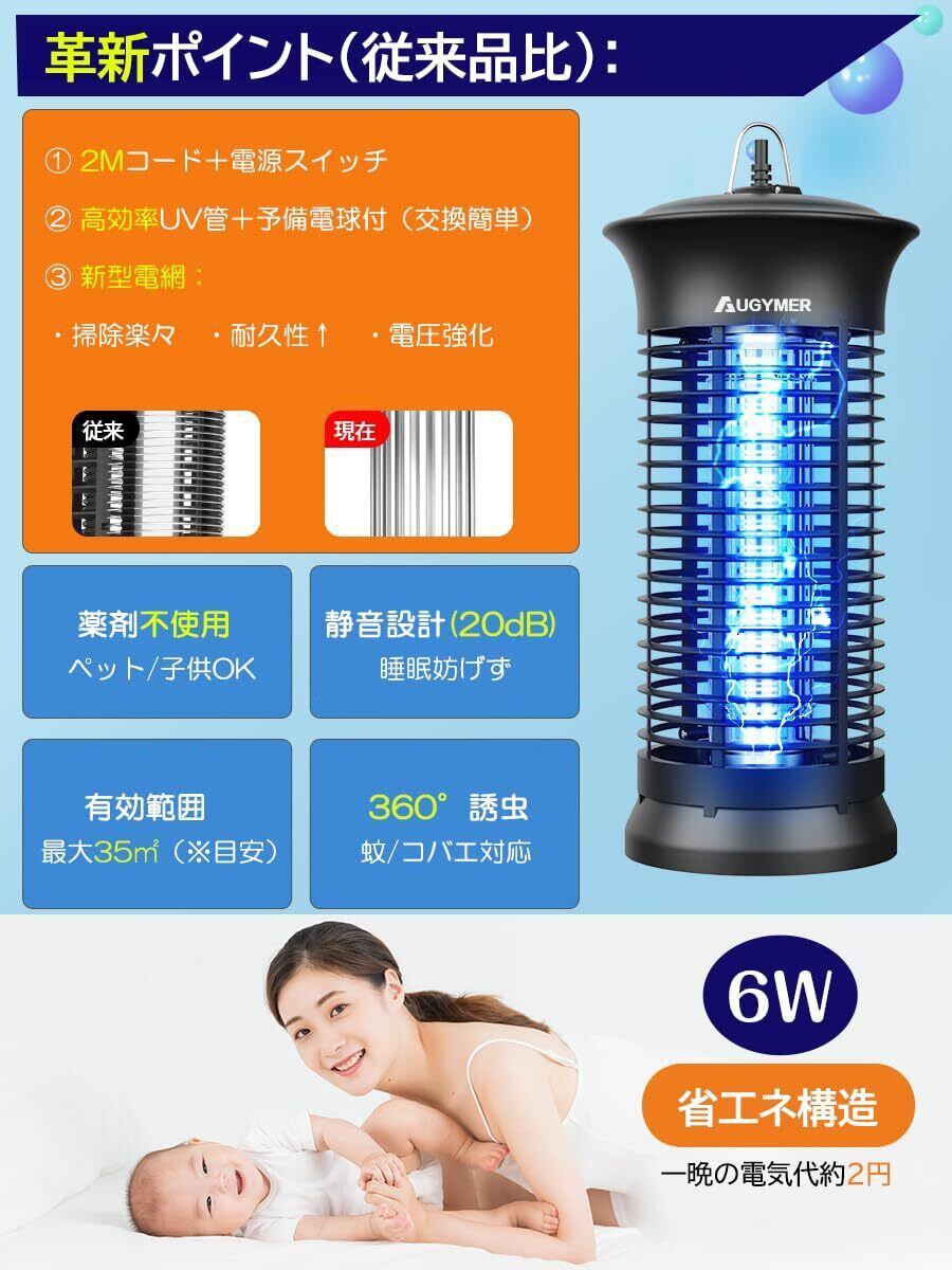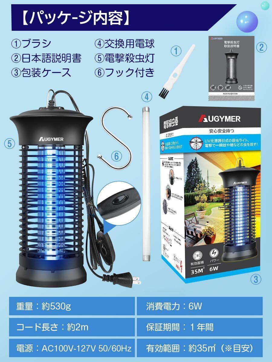 【2025最新】AUGYMER 電撃殺虫器 捕虫器 ライト コバエ取り機 こばえとり 2Mコード付き 360°強力蚊除け UVランプ 蚊取り器 蚊取り機 蚊よけ ハエ取り ハエとり器 蚊 対策 こばえとり コバエトリ 省エネ 薬剤不要 室内 寝室/居間/台所/玄関/居間/飲食店などに対応 お手入れ簡単 掃除ブラシ&交換用電球&日本語説明書付き