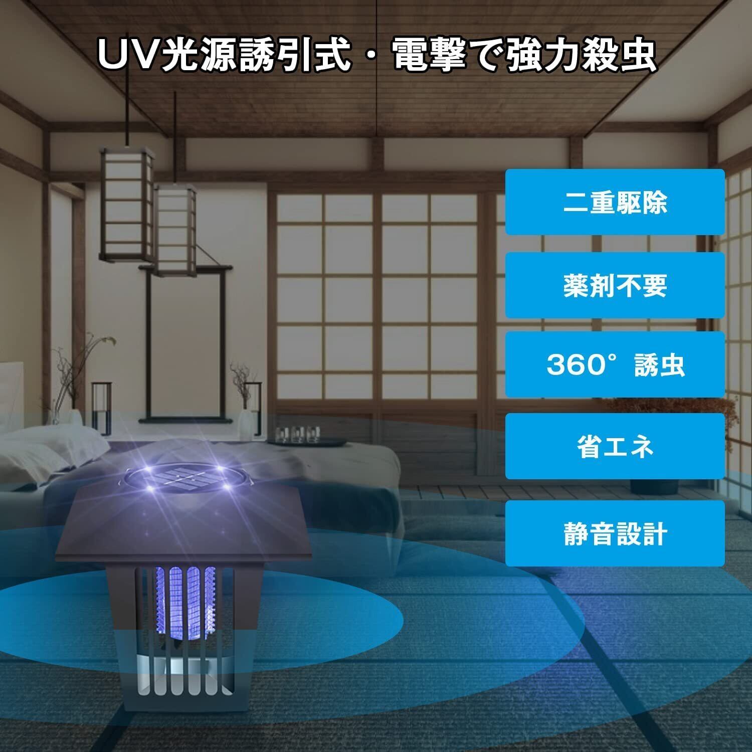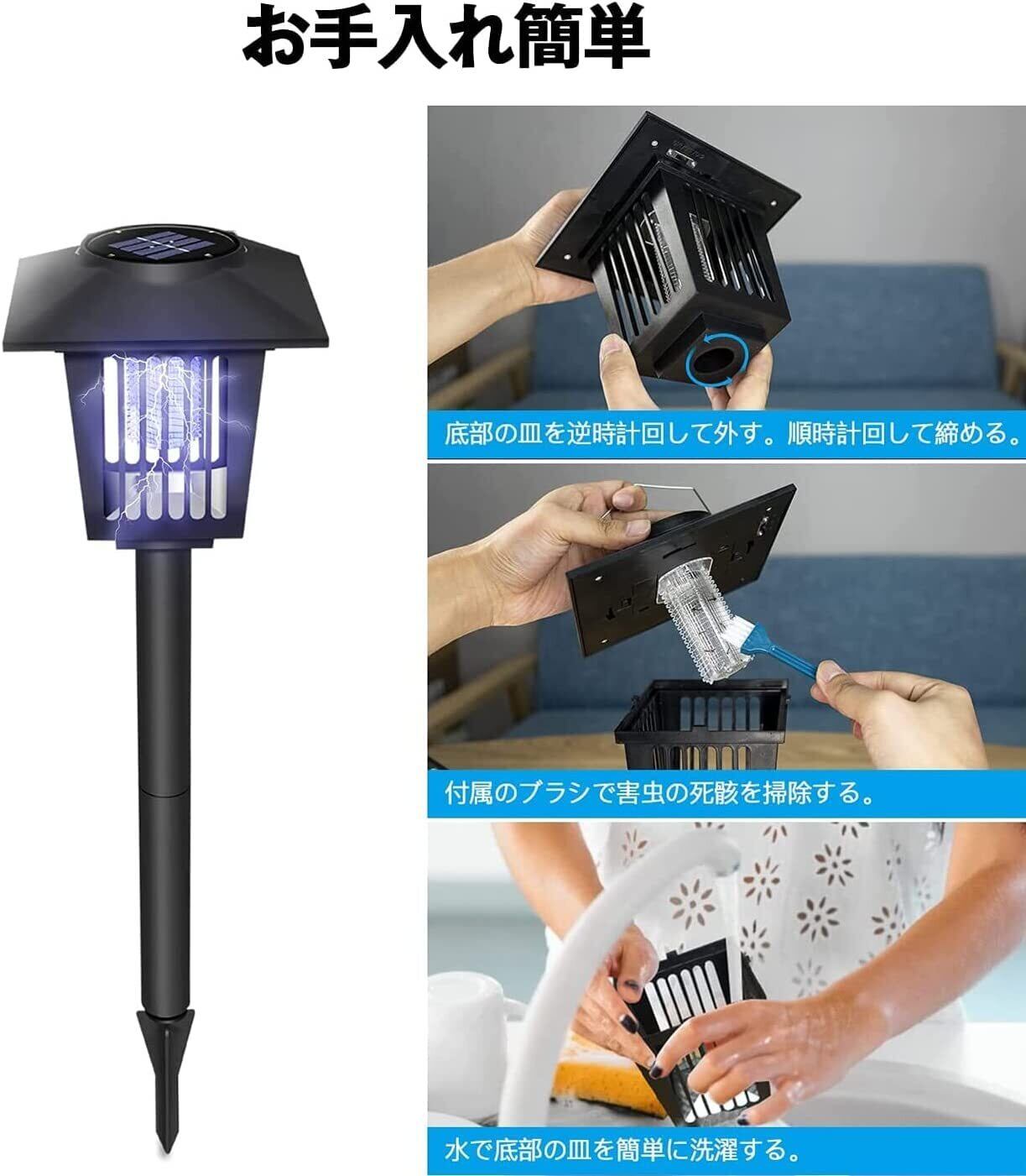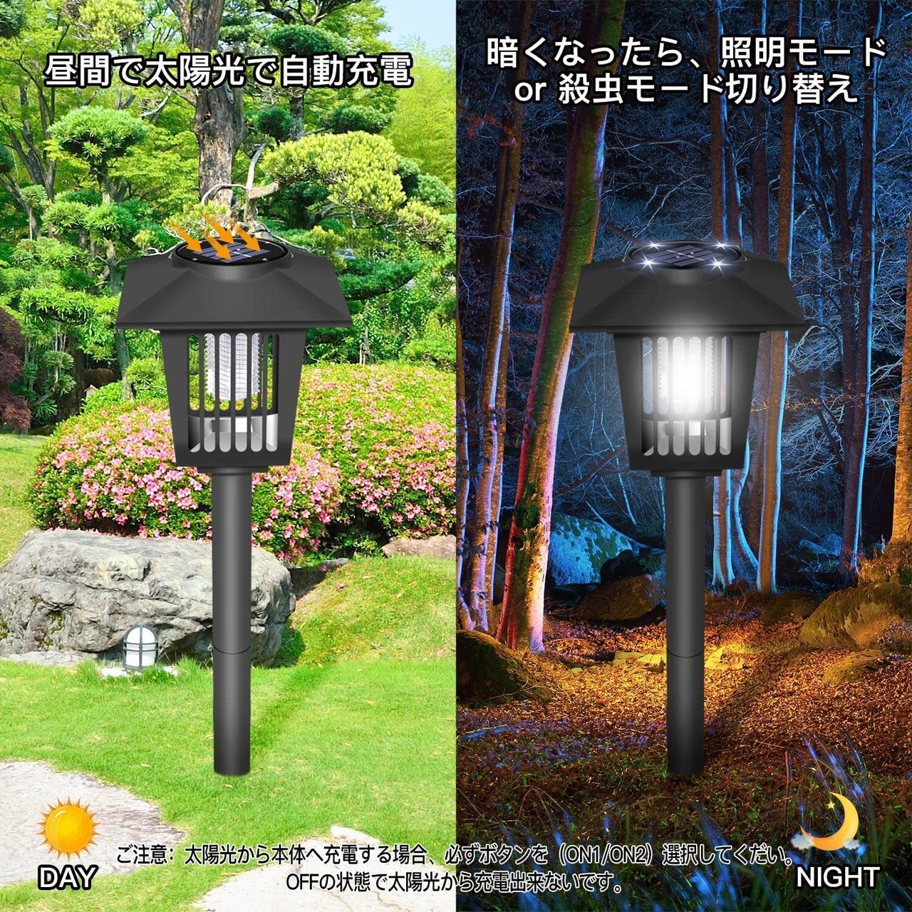 電撃殺虫器 屋外 ソーラー充電式 KLIFE 電撃殺虫機 捕虫器 UV光源誘引式 360°強力蚊除け 電気蚊取り器 虫除け コバエ取り 蚊取りと照明両用 ガーデンライト 電気蚊取り器 殺虫機 虫対策 配線不要 防水 静音 省エネ 置く/吊り下げる/地面に挿す対応 リビング/居間/屋外/庭/園芸/玄関/アウトドアに適用