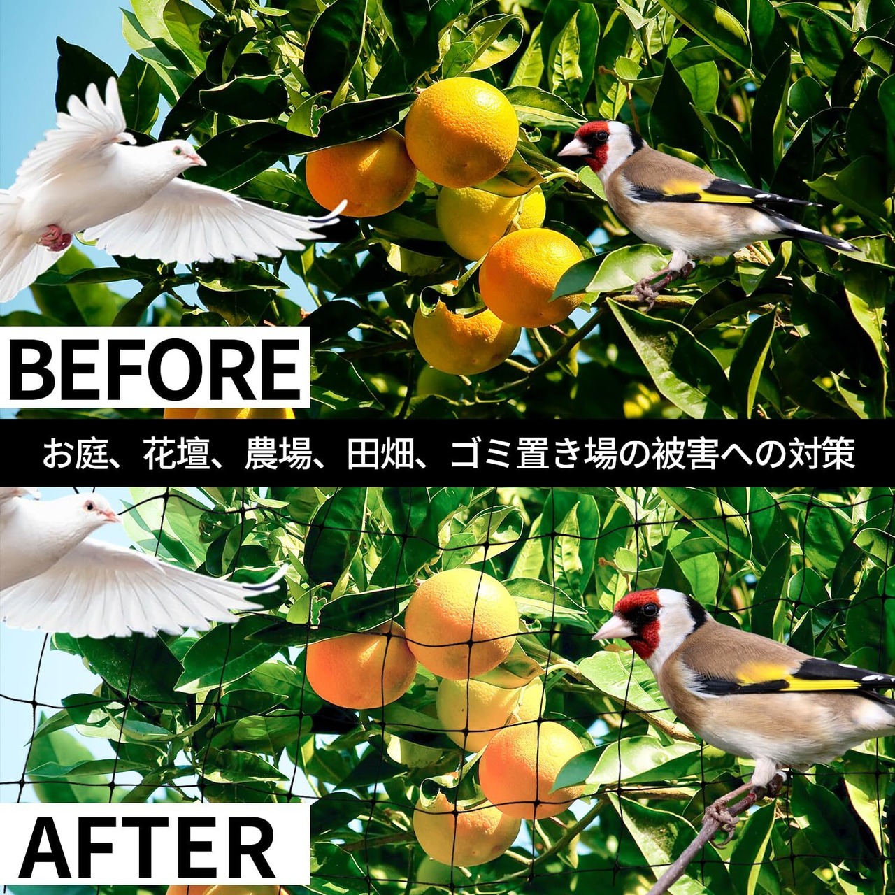 【鳥からの被害を防ぐ】ベランダや家庭菜園向け防鳥ネットです。ハトやツバメ、カラスなどに悩んでいる方にオススメ!ブラック色で、目立たず景観を損ねないのはポイント。19mm極細網目で鳥によるゴミ被害や菜園被害を効果的に防げます。果樹、菜園、ゴミの被害への対策として、様々な場所で活躍しています。