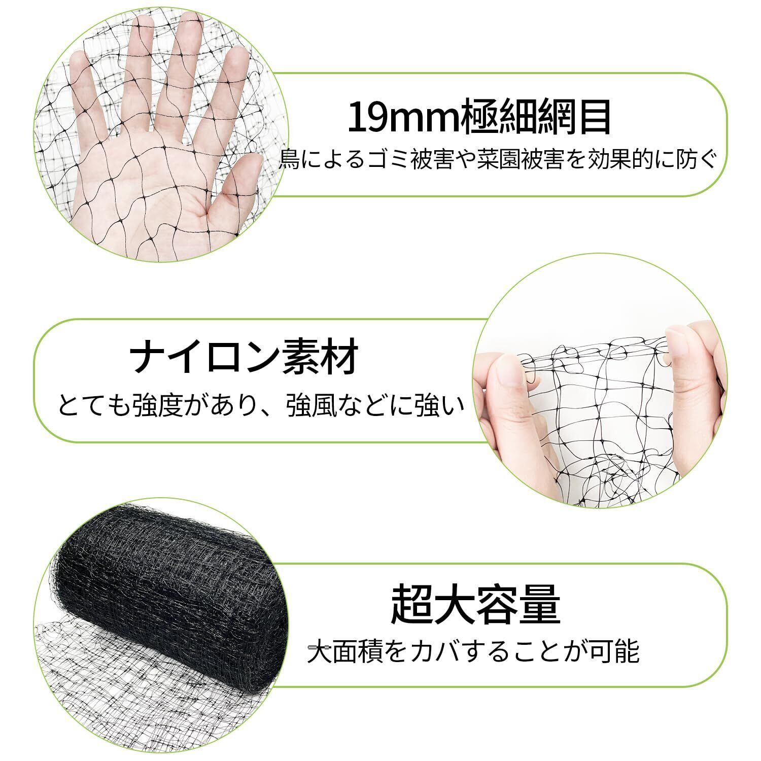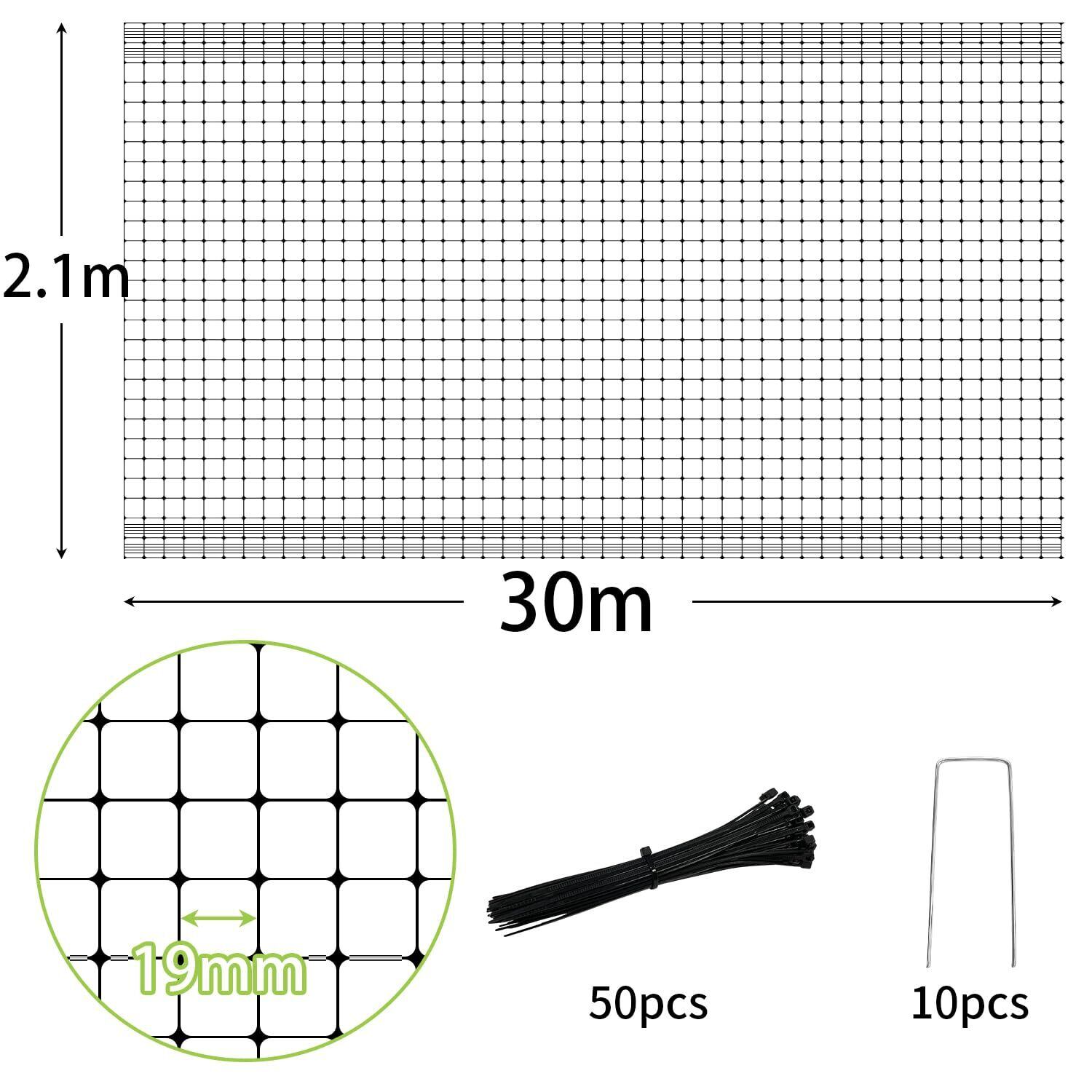 防鳥ネット 黒 鳥よけネット 防鳥ネットセット 幅2.1ⅿ×縦30m 大容量 19mm極細網目 鳥よけ ネット 鳥よけ用 ナイロン材 鳥害対策 グッズ 結束バンドと釘付 鳥・家畜侵入 対策 菜園 果樹守り 園芸用品 鳥よけグッズ