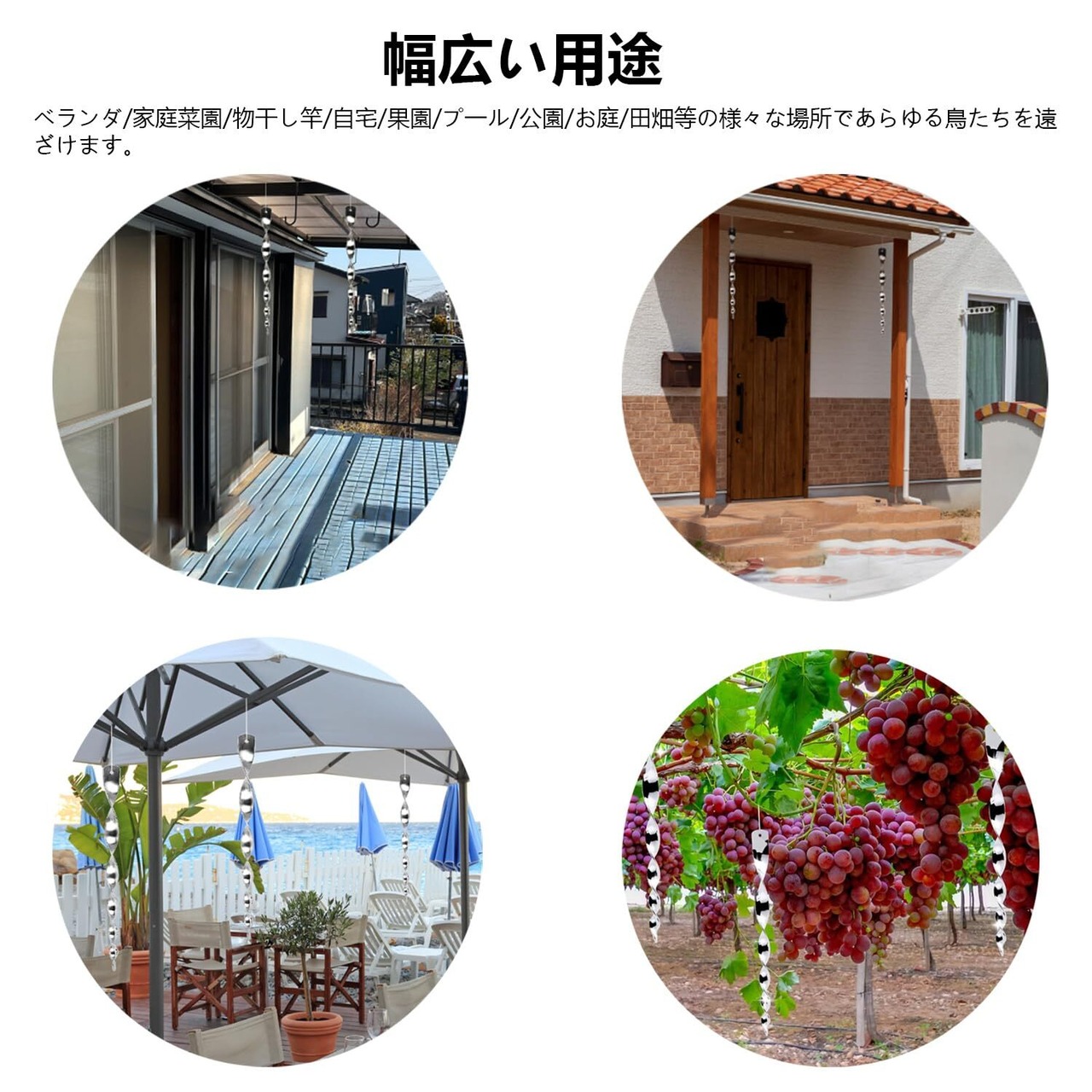 取付簡単:吊り下げるだけでご使用いただける商品ですので持ち運びも便利で場所も選ばずどこでもご使用いただけます。お庭/田畑/お店/オフィス/公園/池/プール/自宅/ベランダ等の様々な場所であらゆる鳥たちを遠ざけます。