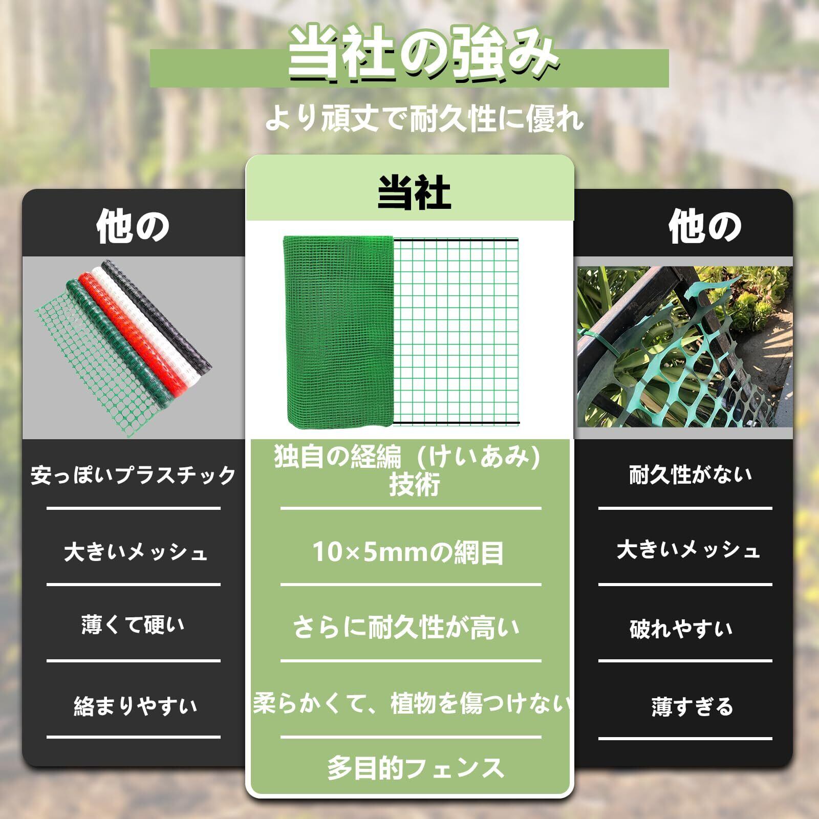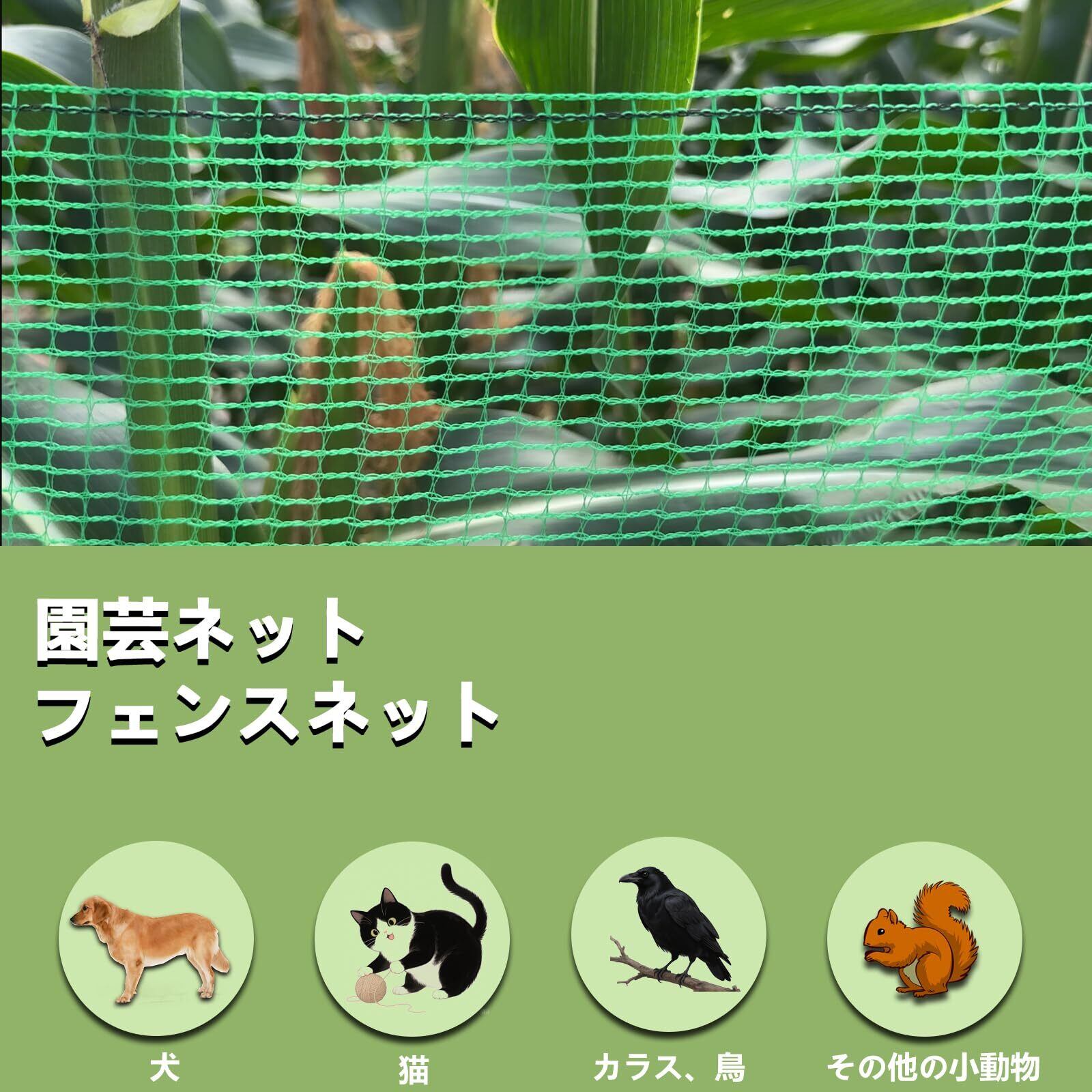 優れた耐久性・全天候型:高品質ポリエチレン素材のネット 網は、紫外線・風・雨・雪に強く、屋外フェンスや園芸ネット、防獣フェンスとして長期間使用可能。フェンスネットとして動物のひっかきや噛みつきにも強く、安心の屋外用ネットです
