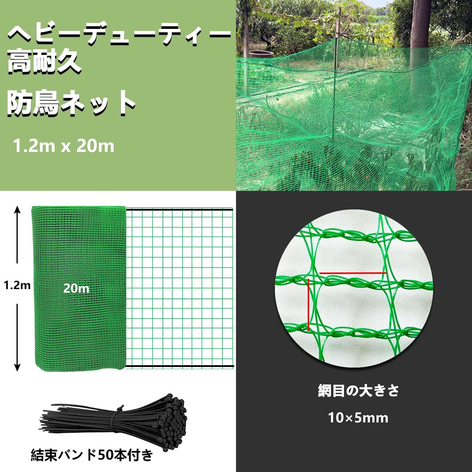 1.2m×20m ネット 網 結束バンド付き 防鳥ネット ベランダ用 防獣フェンス 屋外用 害獣対策 園芸用フェンス 虫除け 細かい目合い10x5mm 多目的 落下防止 防雪 ガーデンフェンス アニマルフェンス