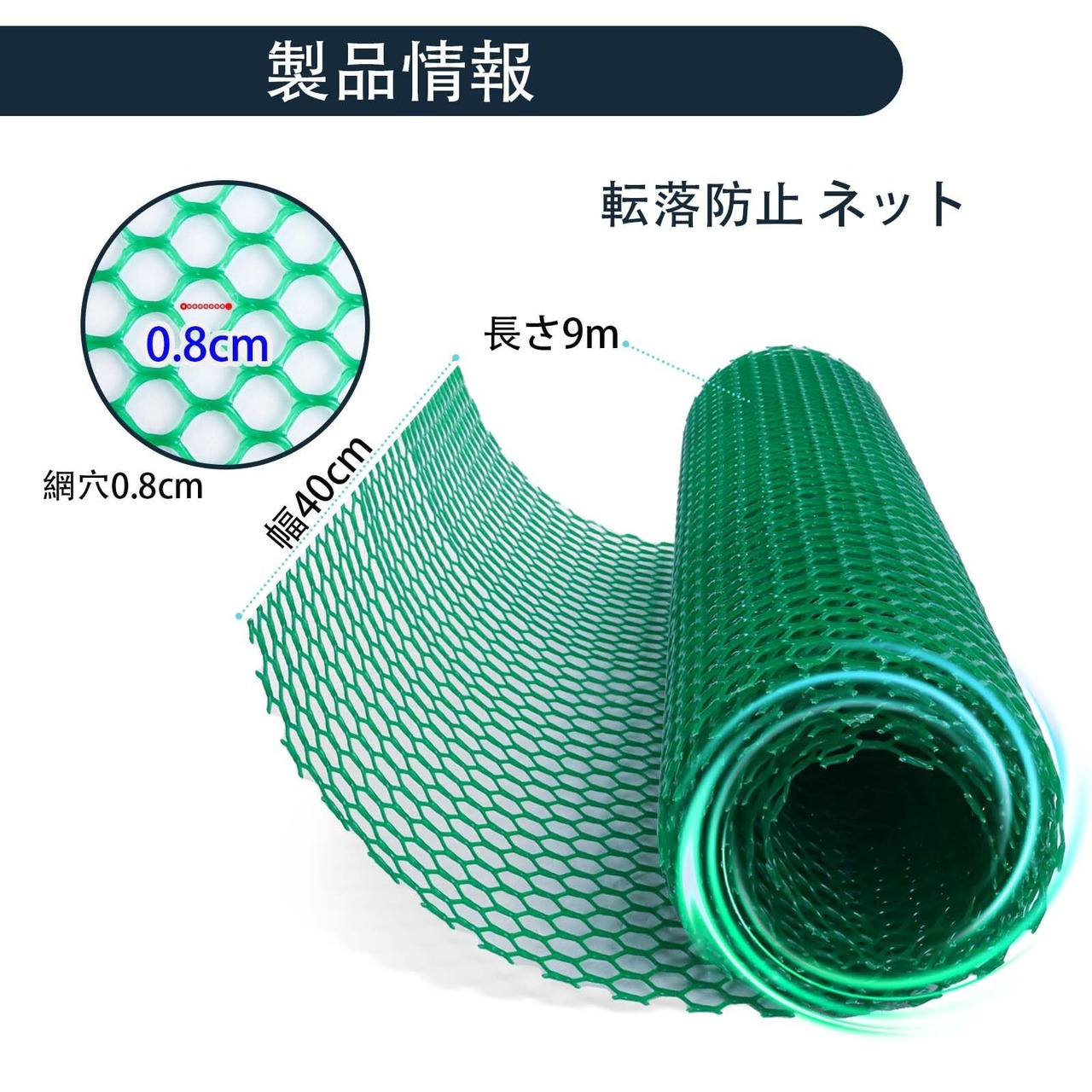適切なサイズ:網穴0.8cm、幅40cm×長さ9m。結束バンド付き
