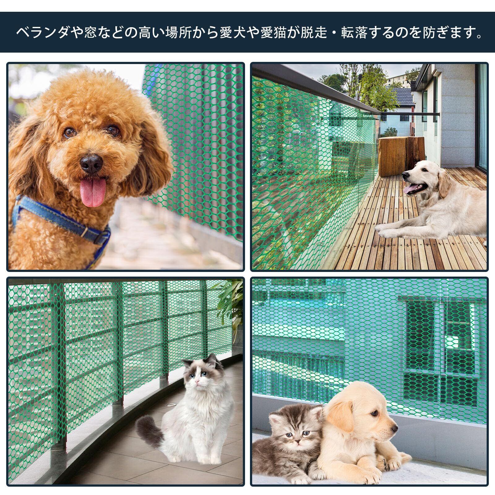 ベランダや窓などの高い場所から愛犬や愛猫が脱走・転落するのを防ぎます。