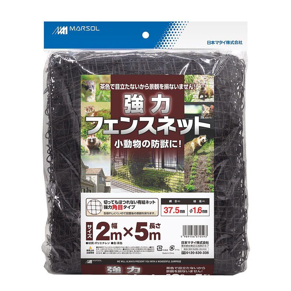 【人気商品】日本マタイ(Nihon Matai) (マルソル) 侵入防止ネット 強力フェンスネット 37.5mm角 2m×5m 茶 HC07059