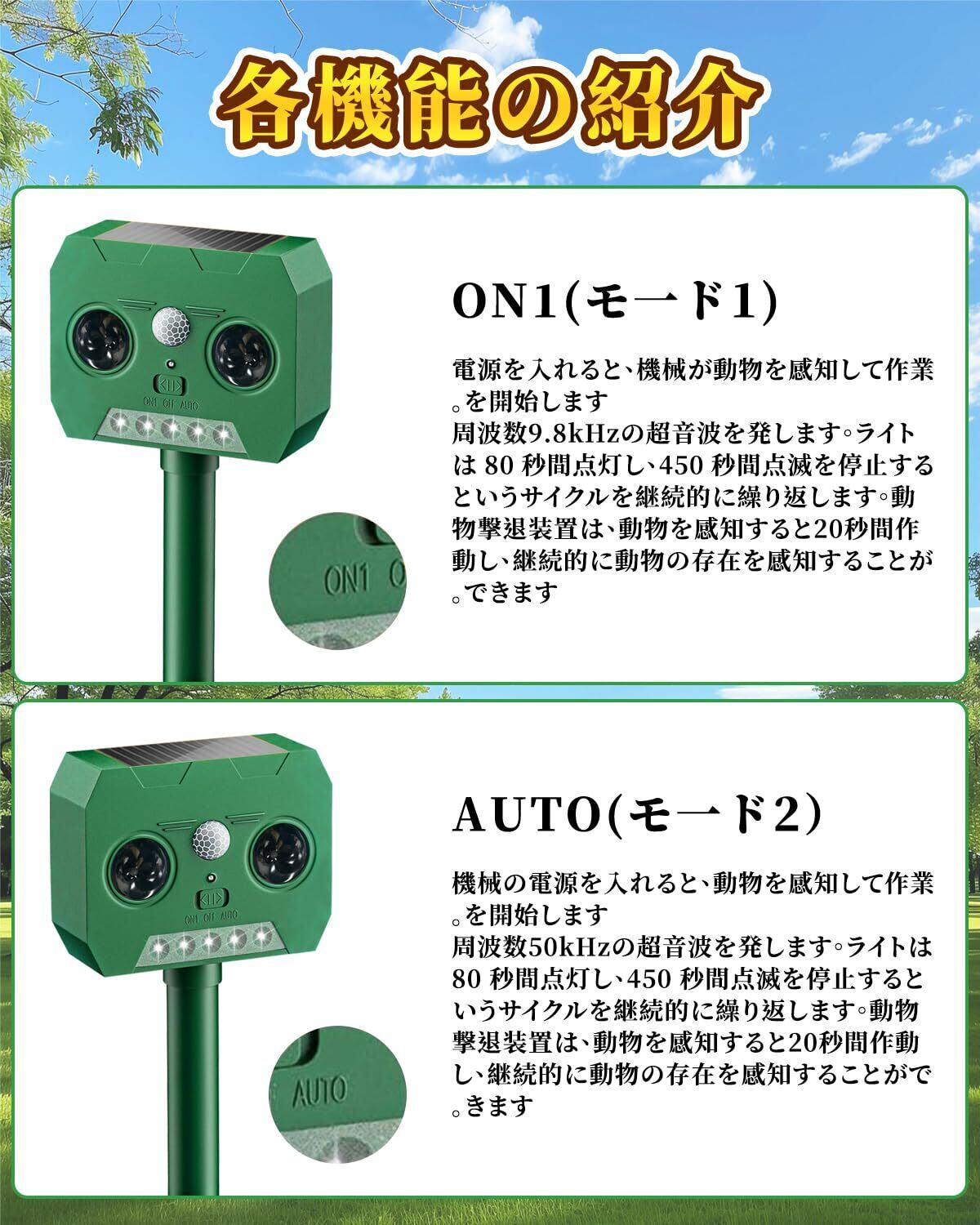 【特価セール】【2025新登場 】猫よけ対策 超音波 ねこよけ 多種動物撃退器 猫よけ 対策 野良猫 2つのモード 12m感知範囲 警報音 ソーラー充電 PIR赤外線センサー 超音波 害獣対策 防水 超長待機 猫よけ 犬よけ 鳥よけ 猫よけグッズ 害獣撃退器 差し込み&壁掛け型の両用