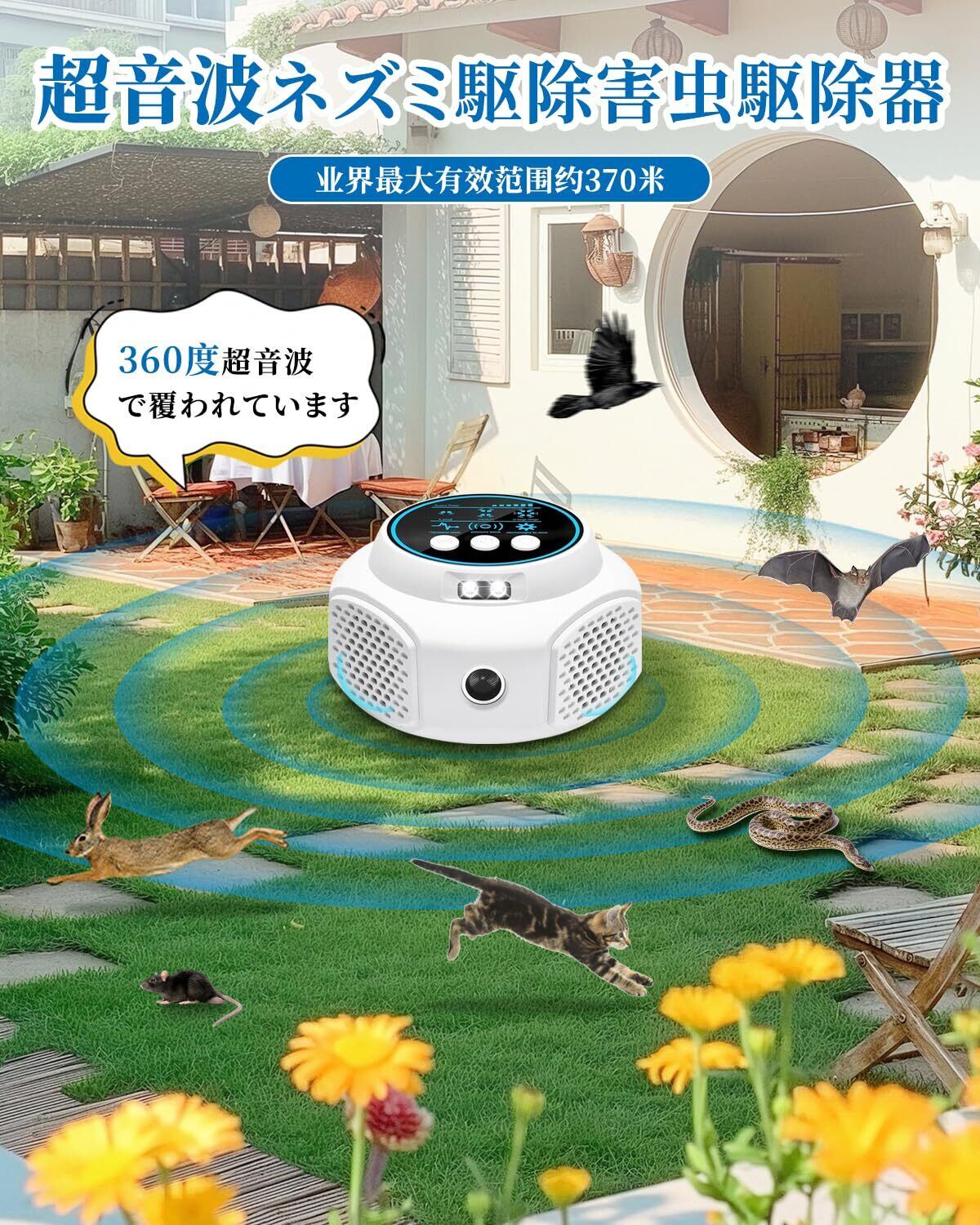 ネズミ駆除 超音波 ネズミ 超音波 鼠駆除 ゴキブリ駆除 害虫駆除 360° スピーカー 動物撃退器 害虫防除 強力 静音 無毒無臭 有効範囲350平米電磁波種類超音波+圧力波+常夜灯 適用されます寝室です/ガレージです/倉庫です/台所です/リビングルーム/ペントハウス 日本語取扱説明書付き