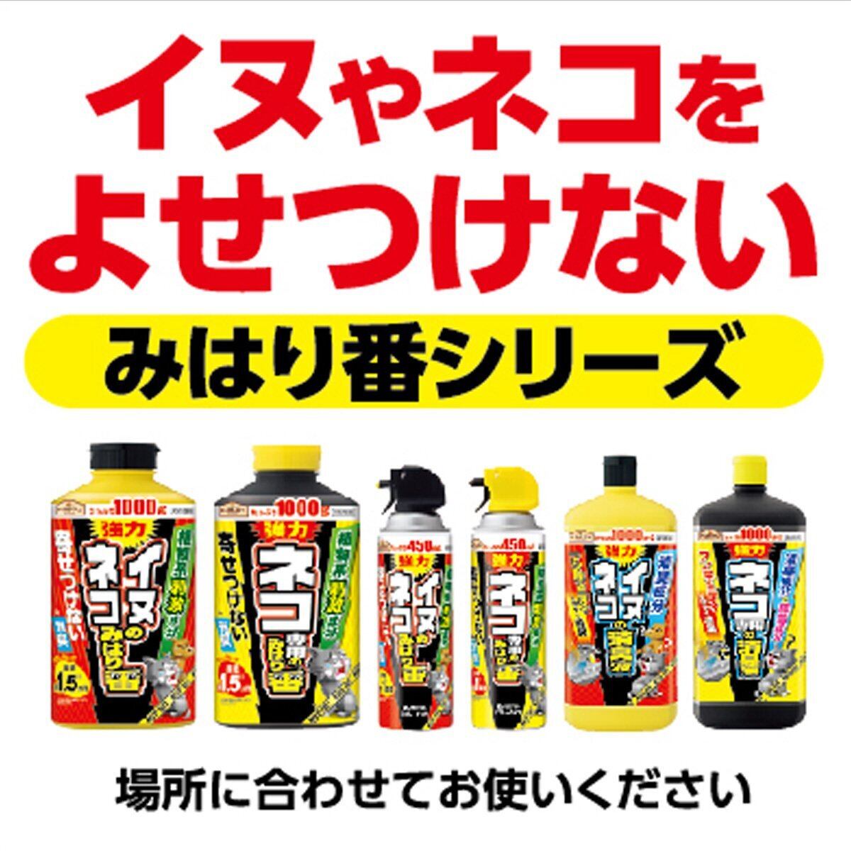犬猫の排泄場所で本剤処理後に「イヌ・ネコのみはり番」や「ネコ専用のみはり番」(忌避剤)を使用することを勧めます。