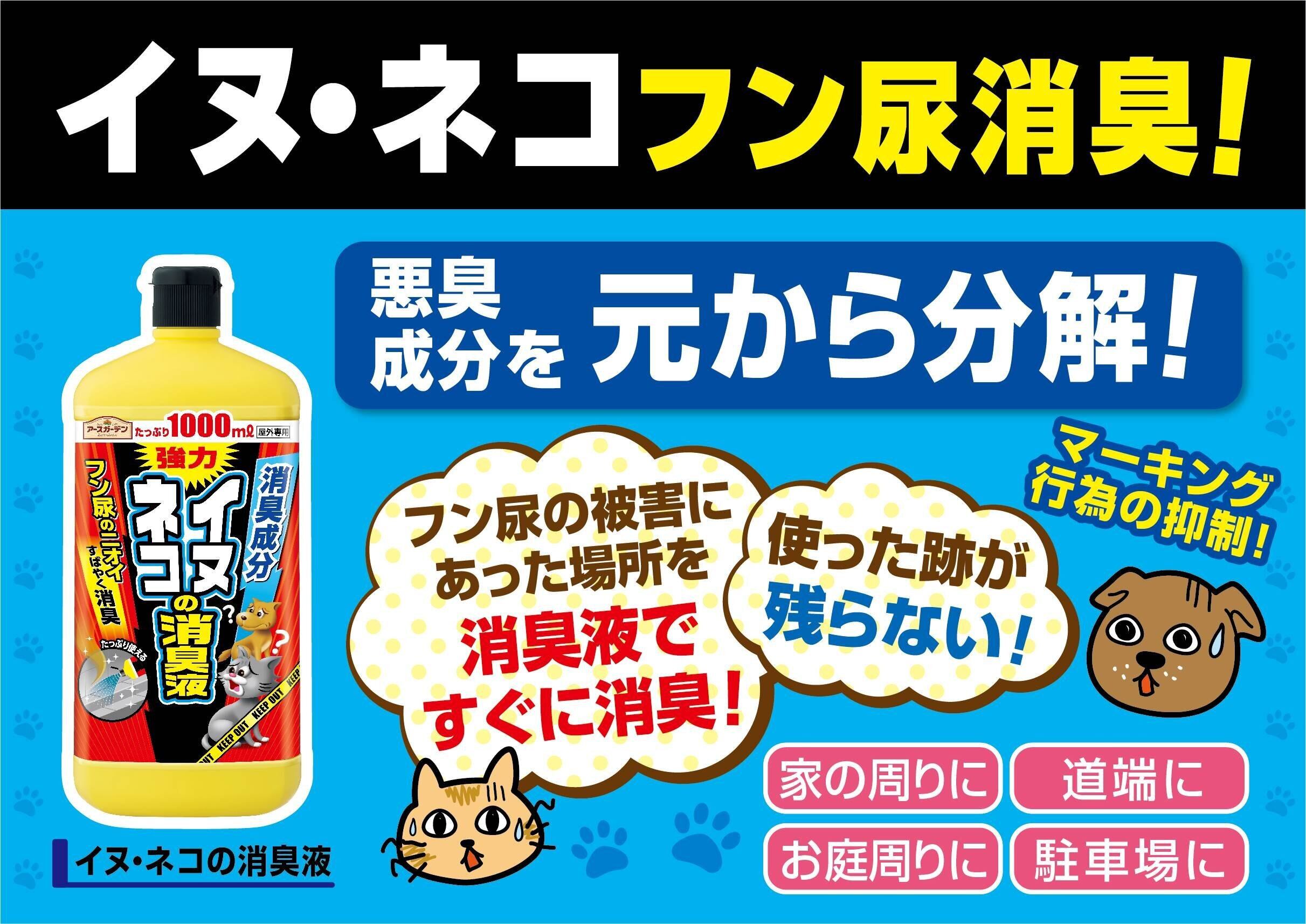 イヌ・ネコのフン尿臭を強力消臭する消臭液。