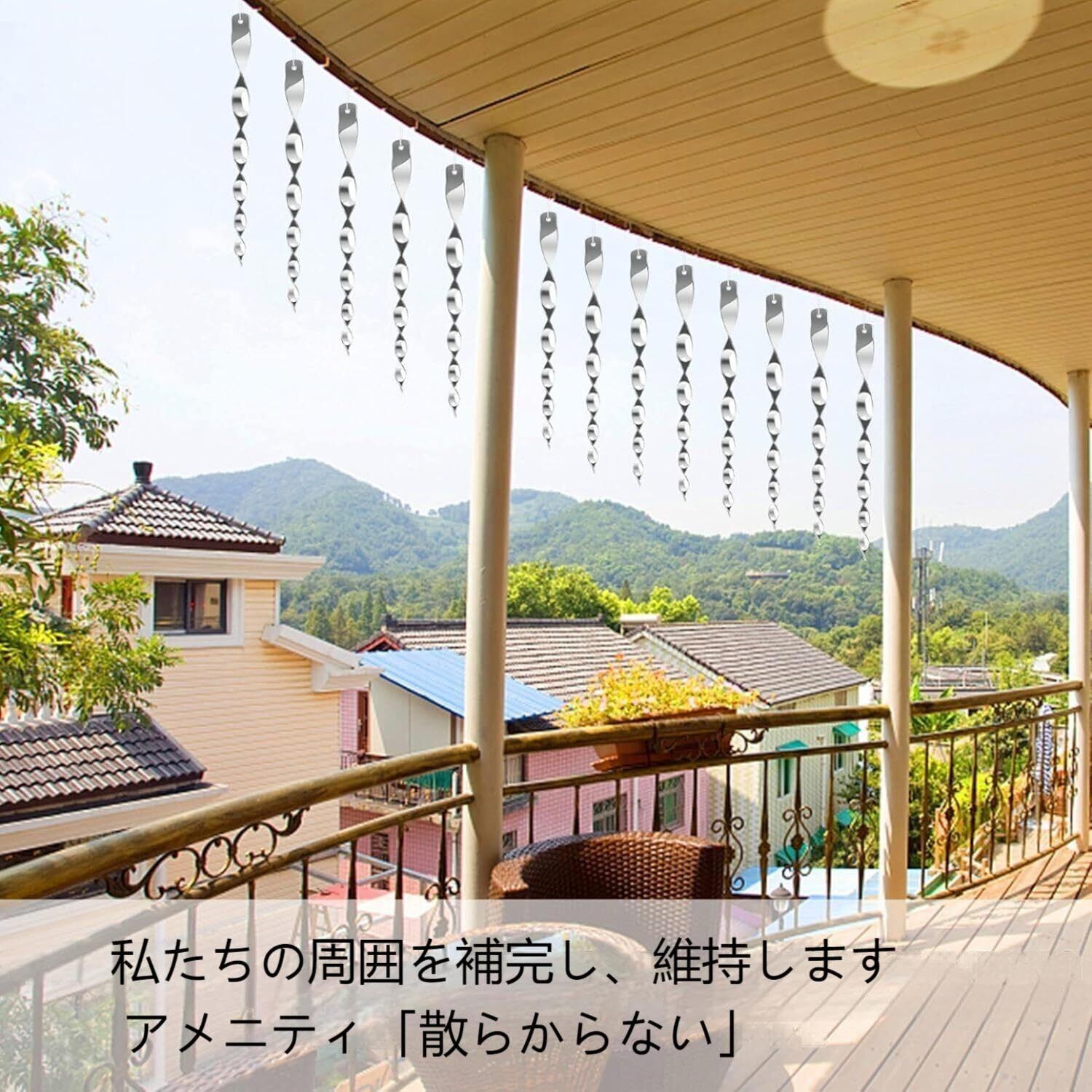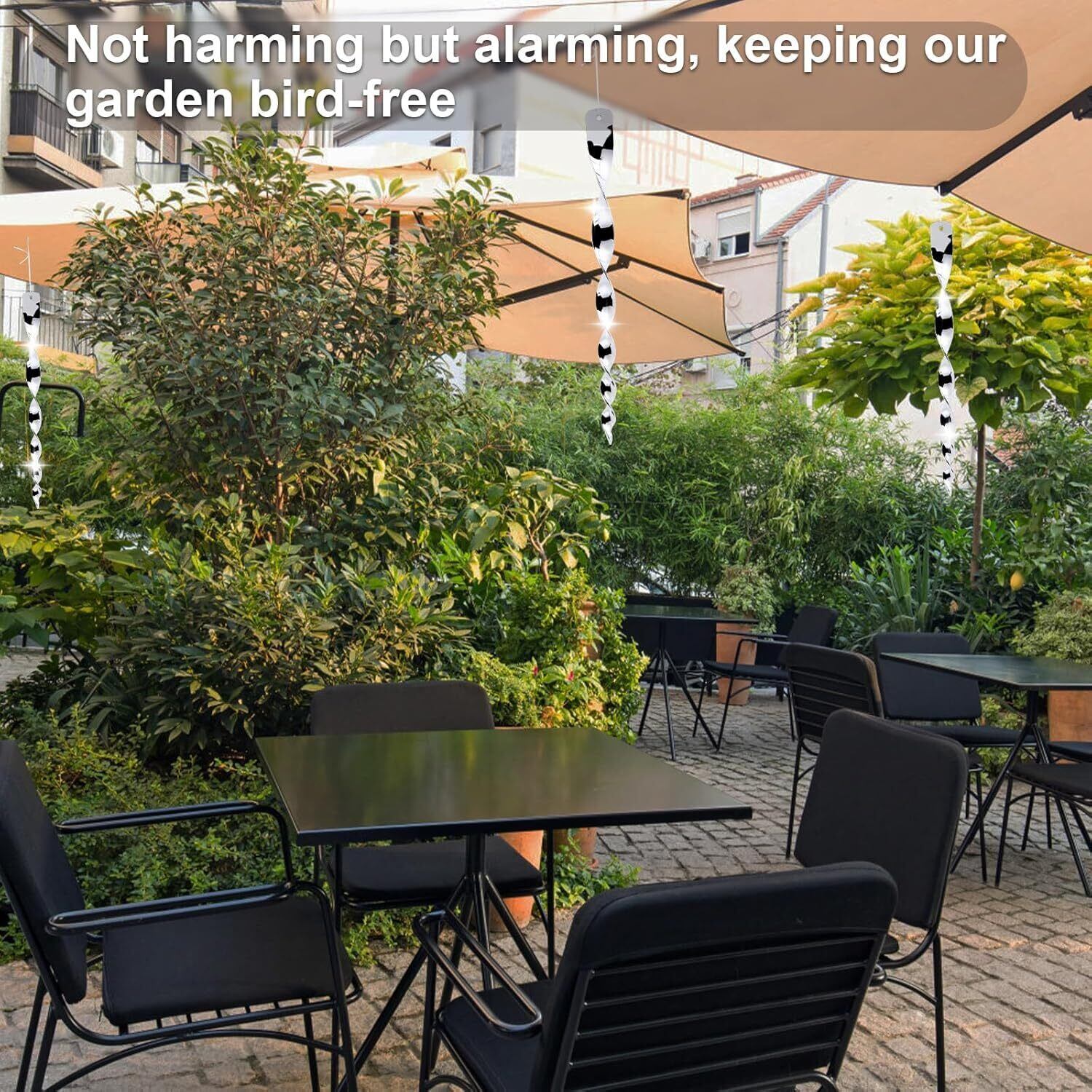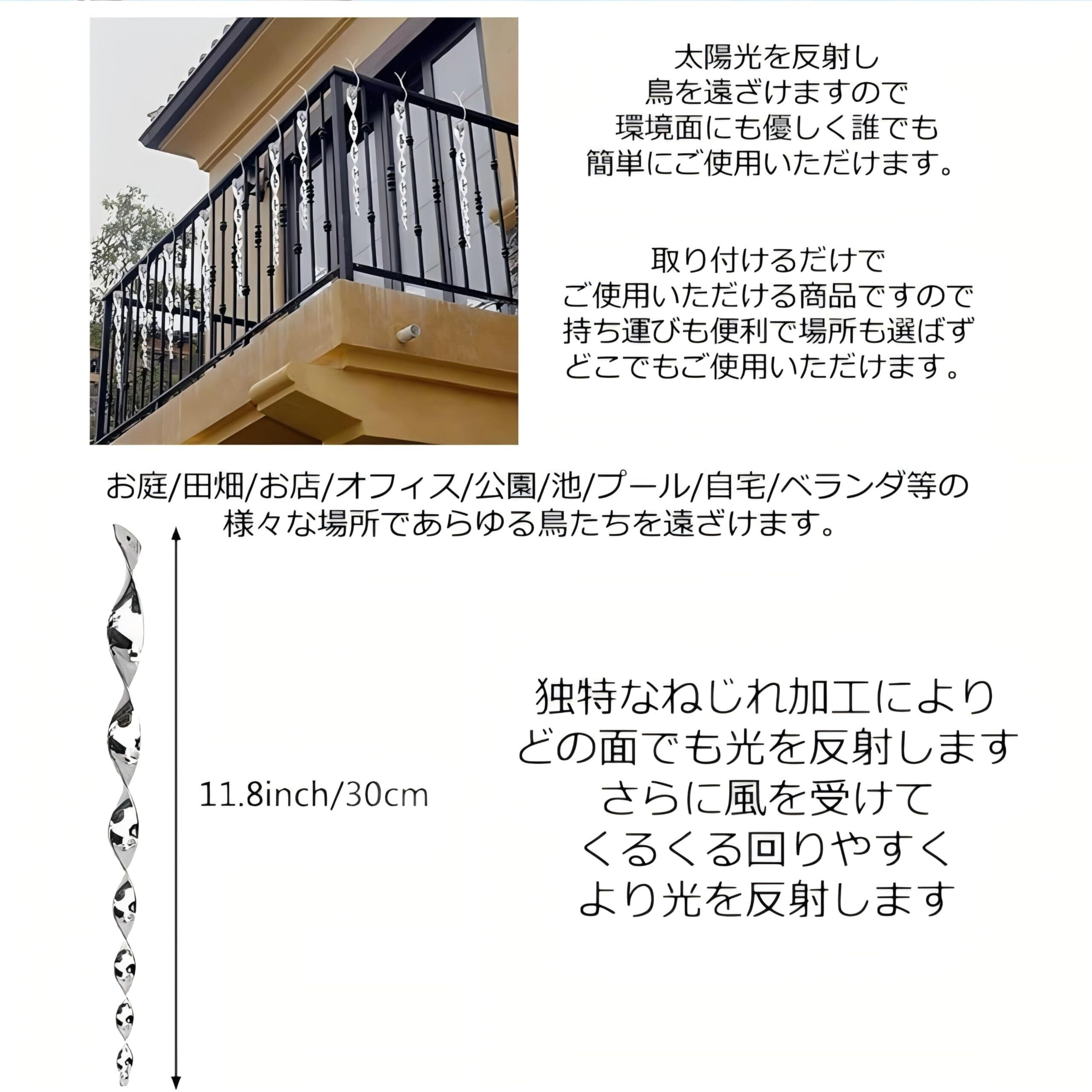 反射と揺れで強力撃退!:キラキラと太陽光を反射し、風で揺れる設計により、スズメよけやカラス・鳩などの鳥類を自然に遠ざけます。害鳥によるベランダや庭の被害を防ぐすずめよけグッズとして大活躍