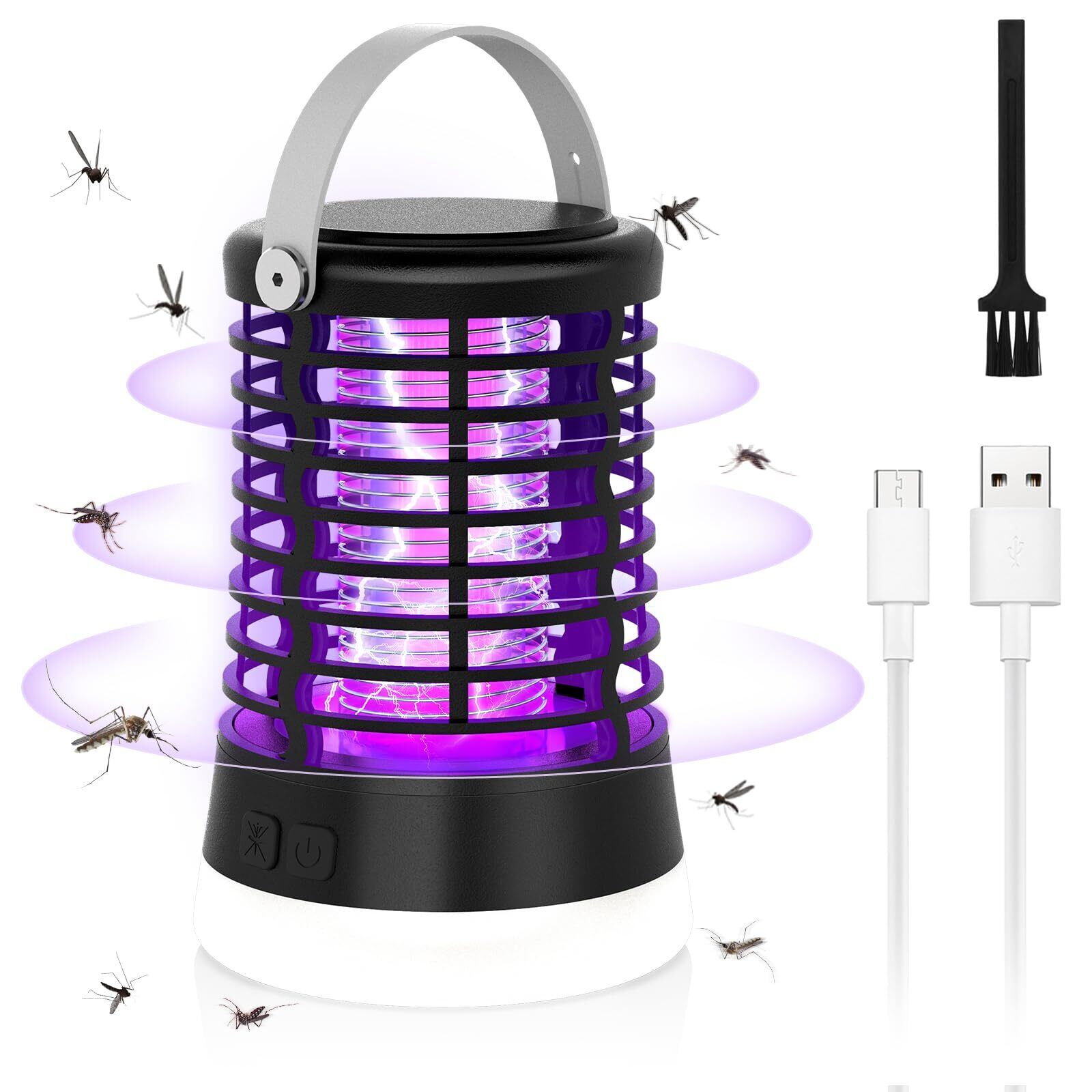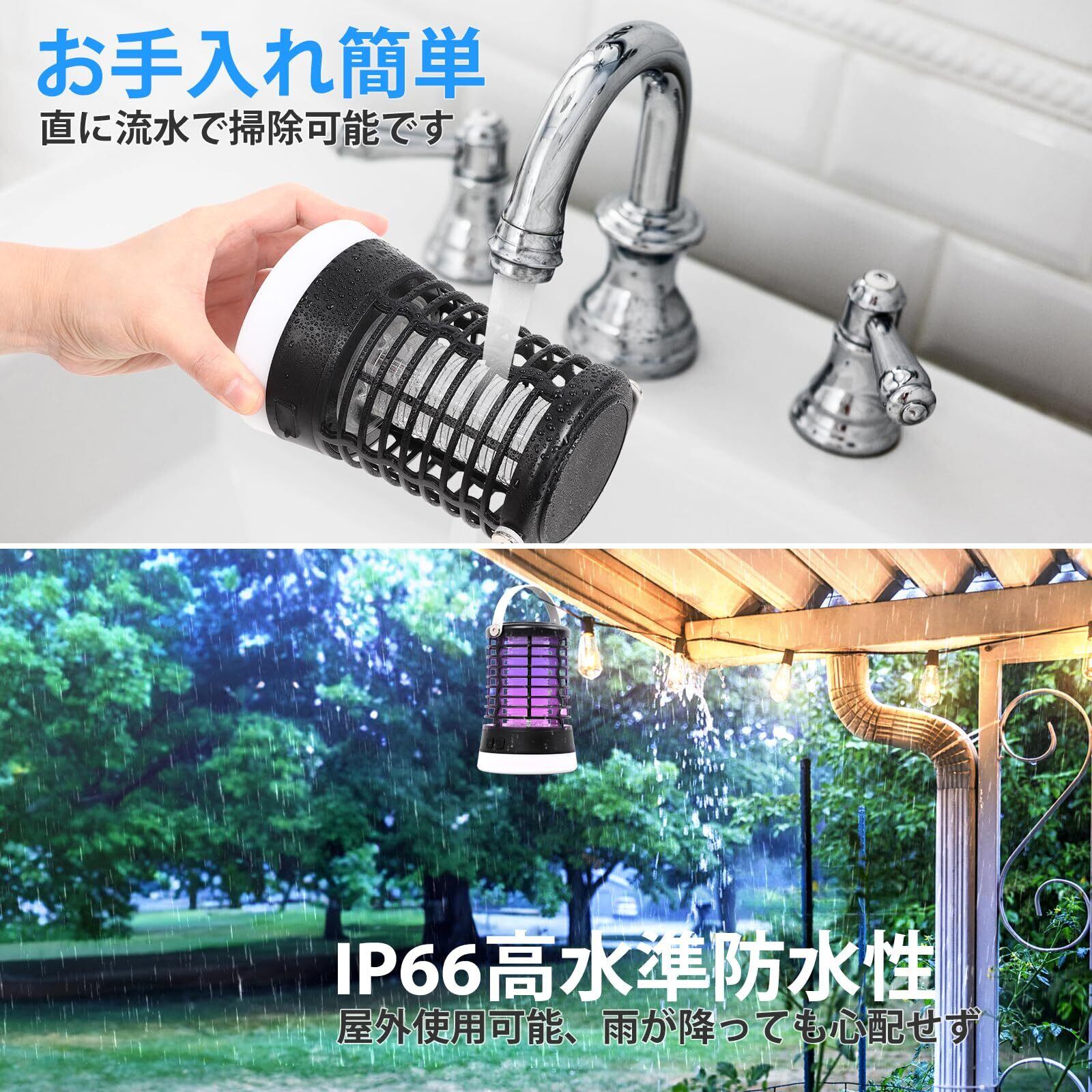 電撃殺虫器 蚊取り 屋外 殺虫灯 コバエ取り 防水 捕虫器 充電式 吊り下げ&置き両用 IPX6完全防水 3つライトモード UV光源誘引式 薬剤不要 静音 省エネー 虫よけ 害虫対策 アウトドア/寝室/居間/台所/ホテル適用 2年